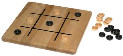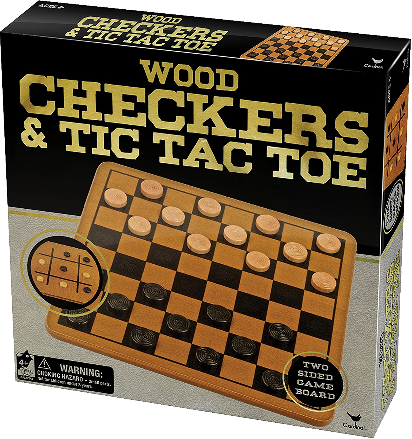 Solid Wood Checkers and Tic-Tac-Toe are now combined and share a hardwood oak finish board. Contemplate strategy on one side, then flip it over for a quick race for three in a row. This classic checkers game is an excellent way to stimulate young minds. Kids can match wits with their family and combine fun and logic. It's designed for two players at a time, and it will be a good addition to the family game closet. Players ages 4 and older can enjoy it together. This entertaining game comes with solid wood pieces and a sturdy playing surface that will last.