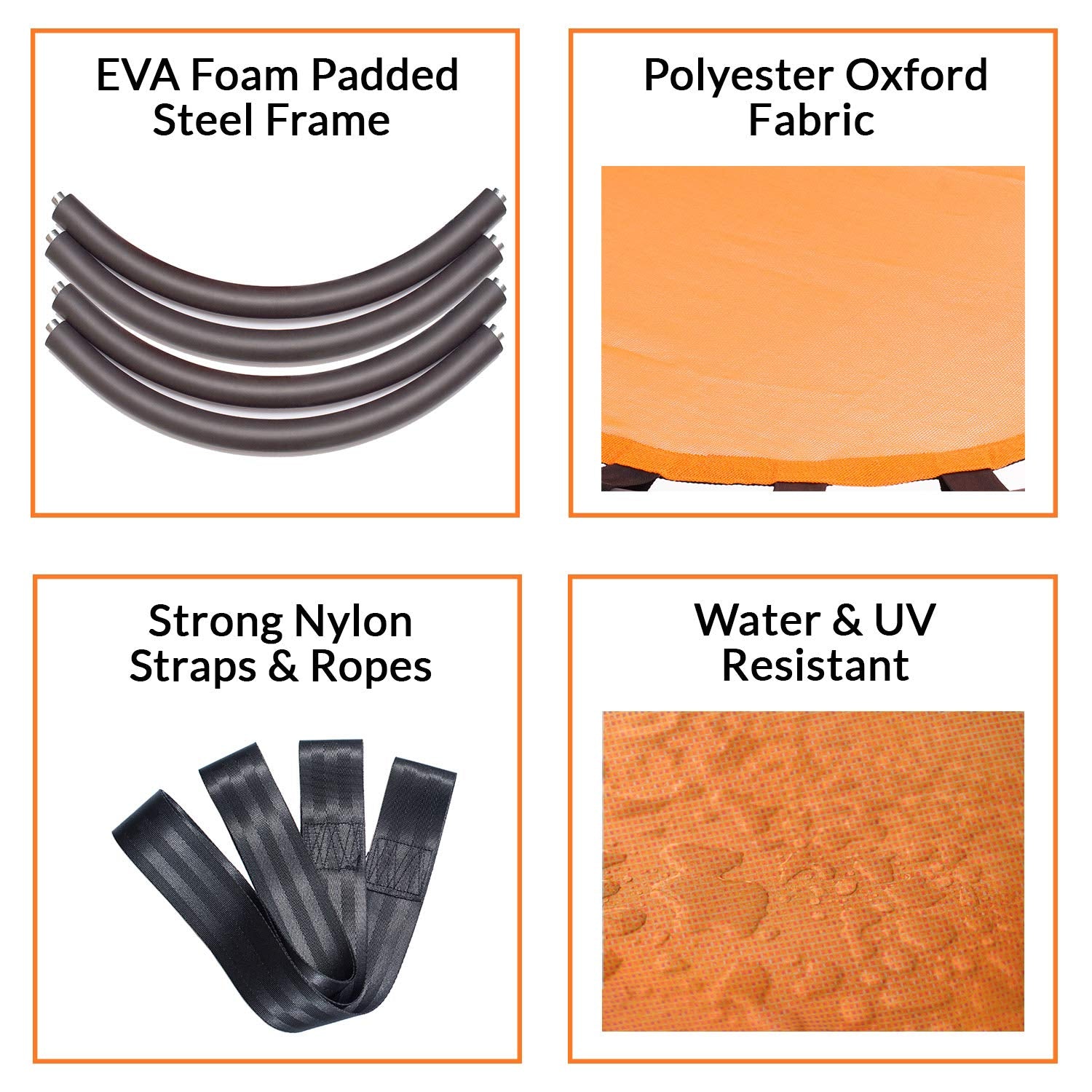 DURABLE DESIGN WITH FOAM PADDED FRAME - Designed with the highest quality and adheres to strict safety requirements with quality engineering including a padded steel frame and soft shock absorbing foam. This swing is built to last!