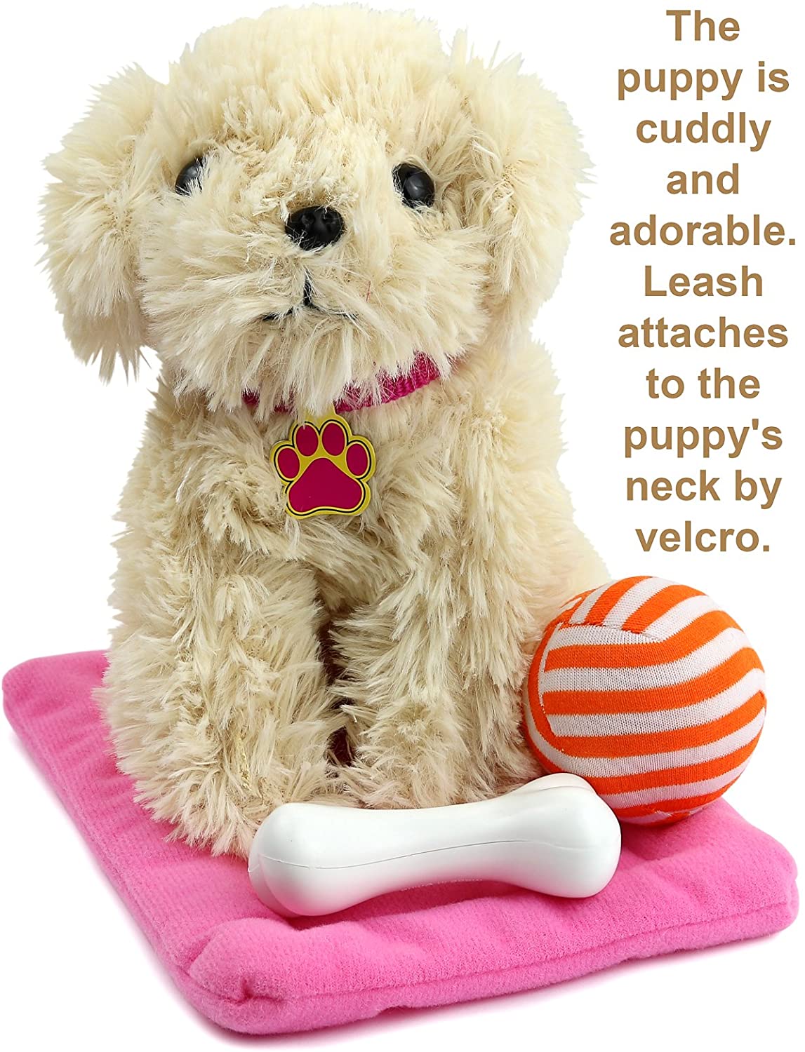 • Set includes: Puppy, Carrier, Bed and Blanket, Leash, Tennis Ball, Bone, Food Bowl and Brush