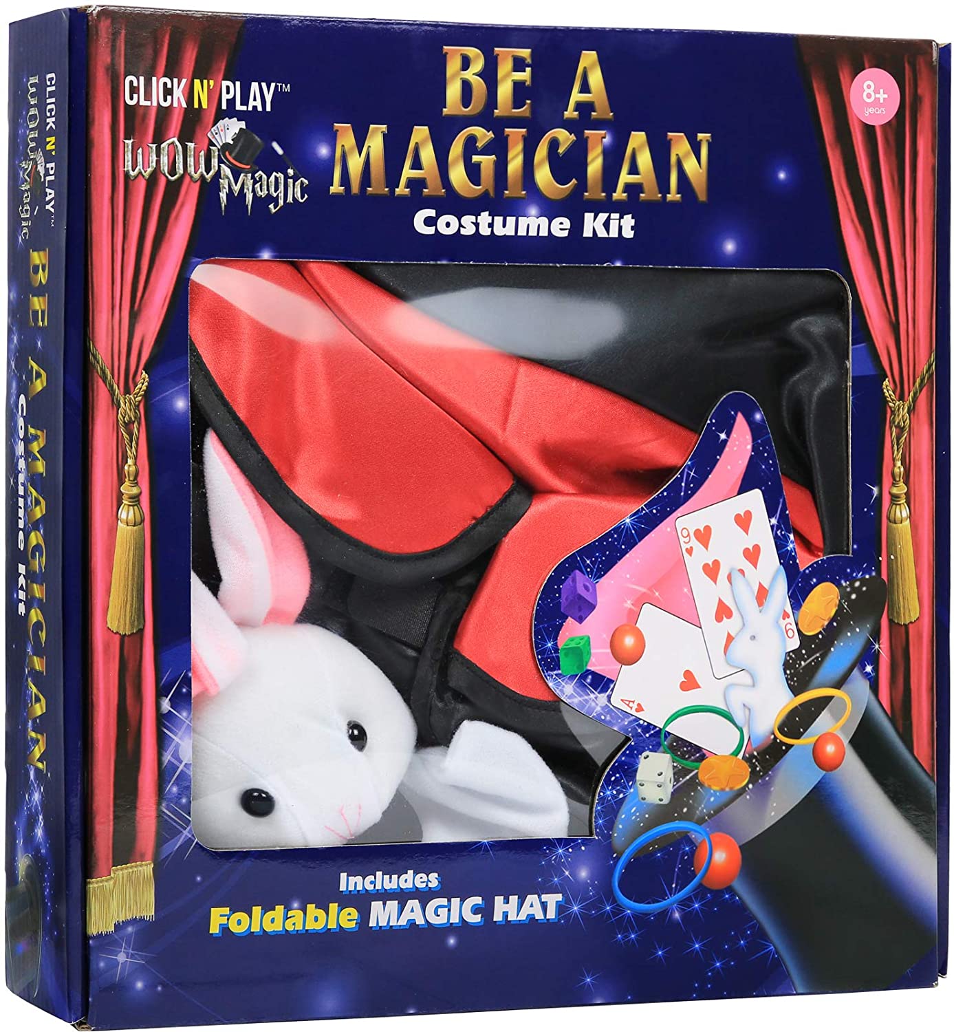 - Set includes; collapsible magician hat, cape, bunny Rabbit, wand and coin.