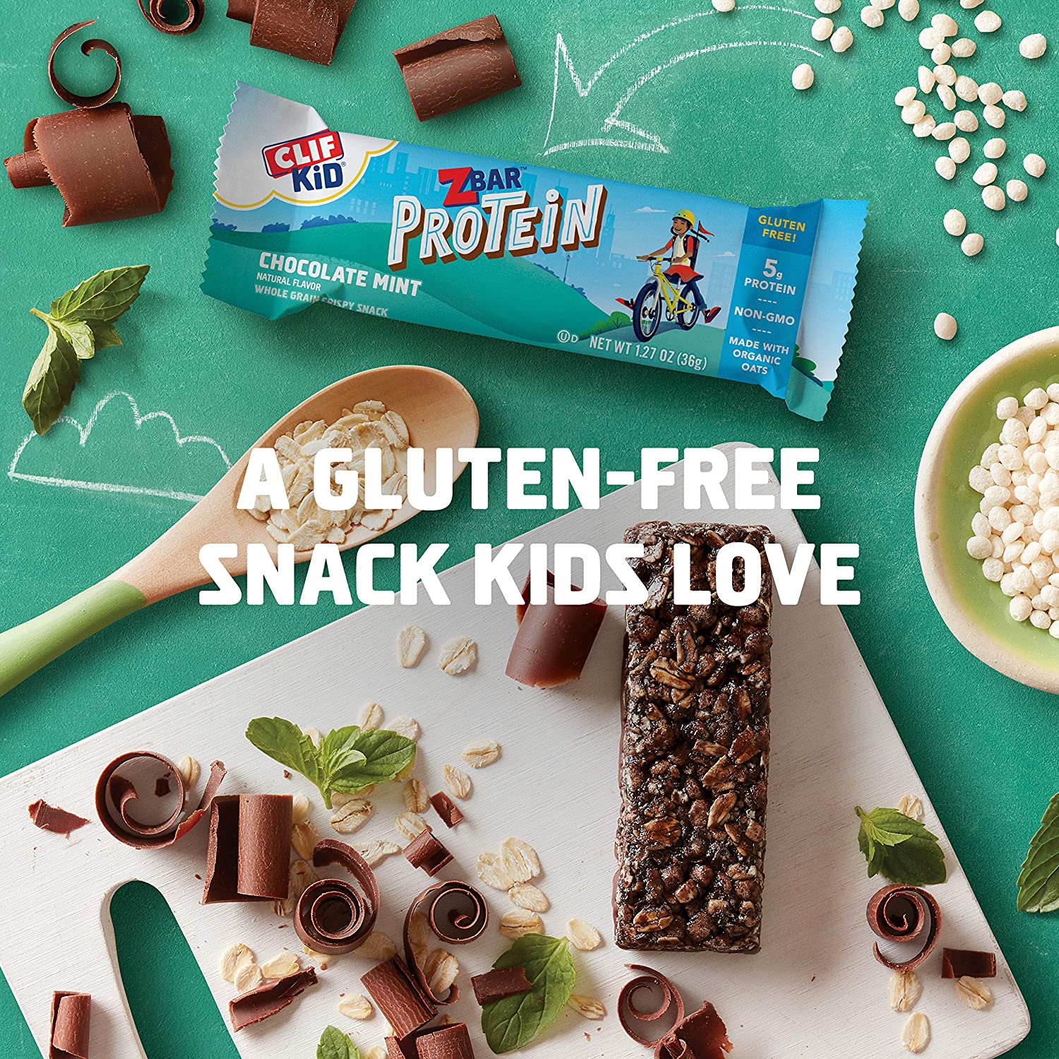 CLIF Kid Zbar Protein is a Gluten-Free, baked whole grain, granola bar snack, made with a blend of carbohydrates, fiber, protein, and fat to give kids energy so they can keep zipping and zooming along. Our products never include high fructose corn syrup or artificial flavors. A perfect addition to the lunch box!