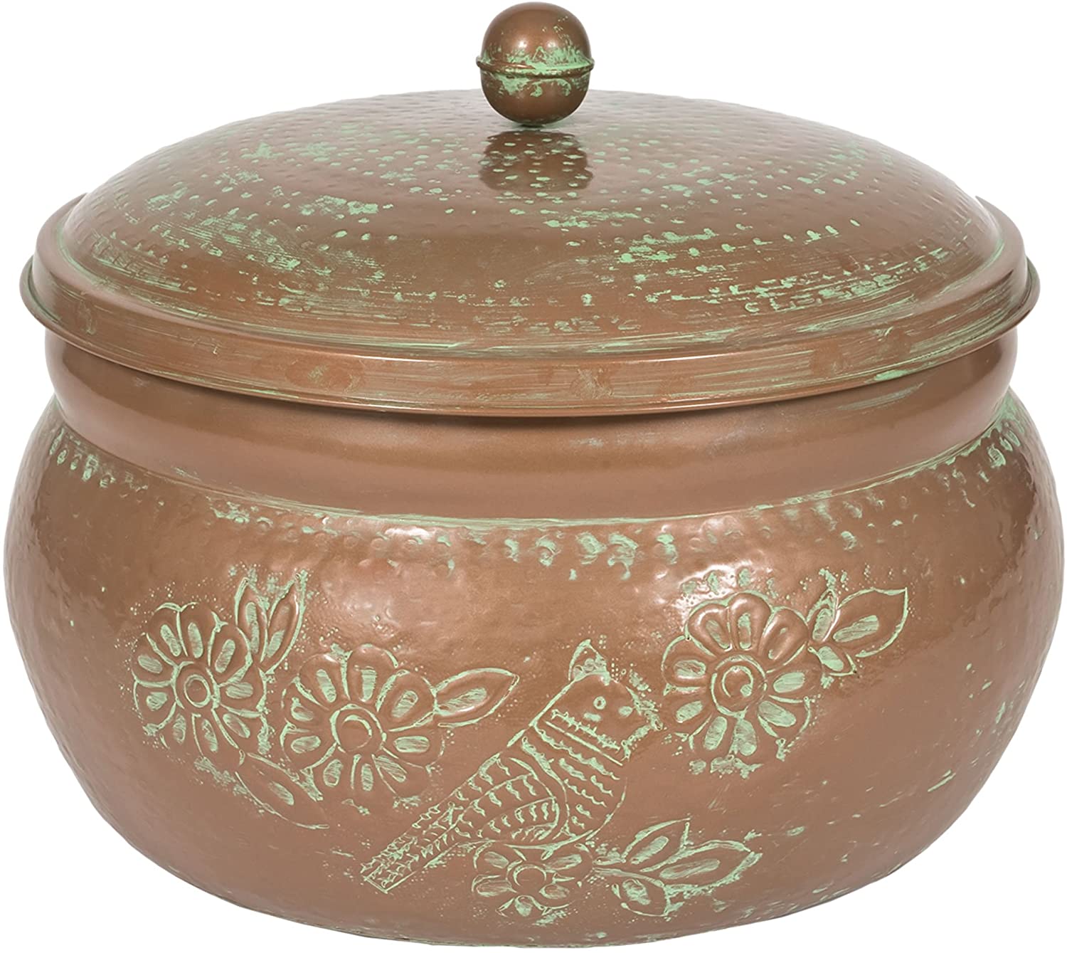 - Powder coated copper finish with green patina