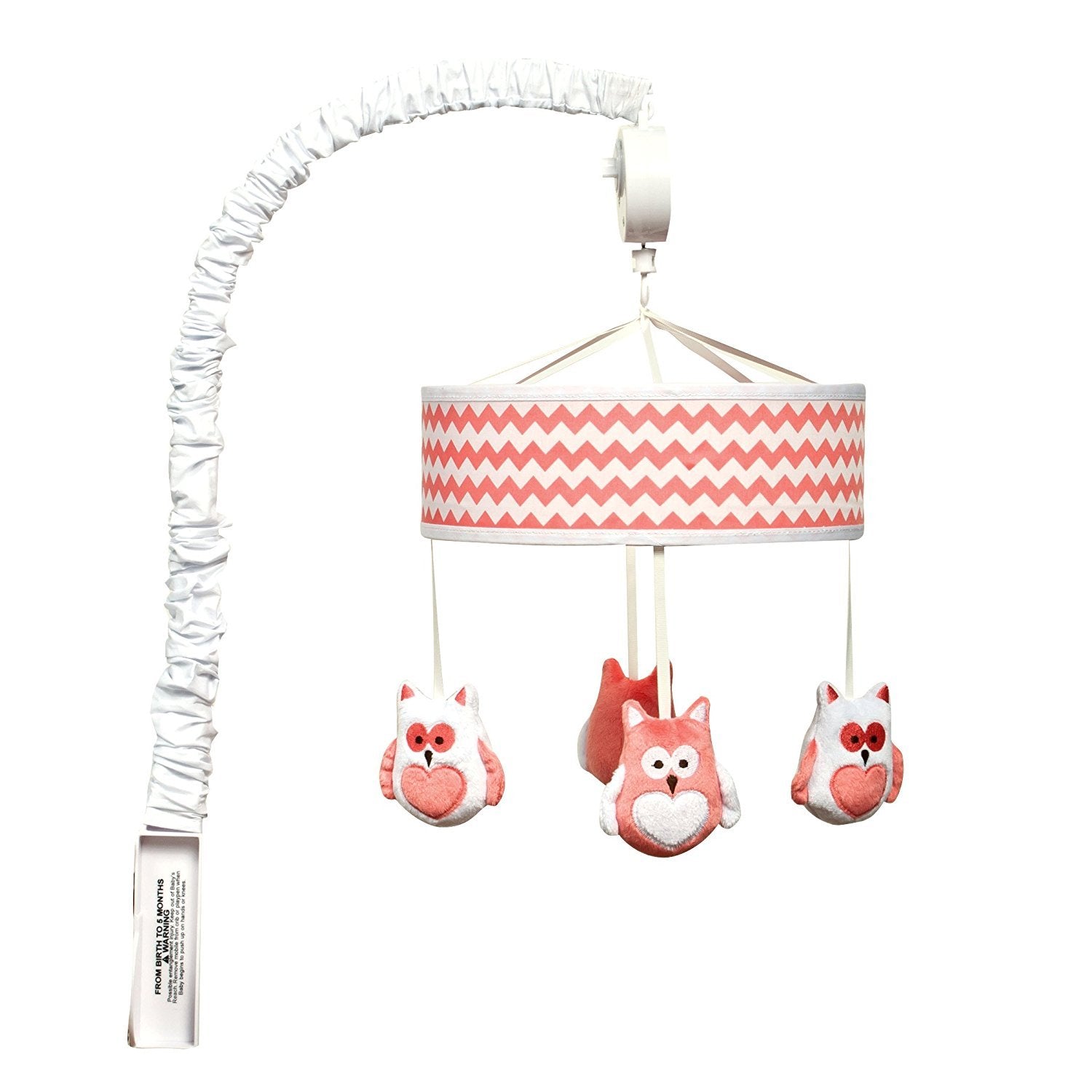 100923 Features: -Encourage eye tracking and sound perception skills with this Cocoa Coral Chevron Musical Mobile by Trend Lab. Wide banded mobile canopy in coral and white chevron stripe and white trim.. -Set includes 4 owls. -Cocoa Coral collection. Musical: -Yes. Primary Material: -Fabric. Gender: -Girl. Color: -Coral and white. Rotating: -Yes. Mount Type: -Crib mounted. Dimensions: Overall Height - Top to Bottom: -18". Overall Width - Side to Side: -10". Overall Depth - Front to Back: -1". Overall Product Weight: -2 lbs.