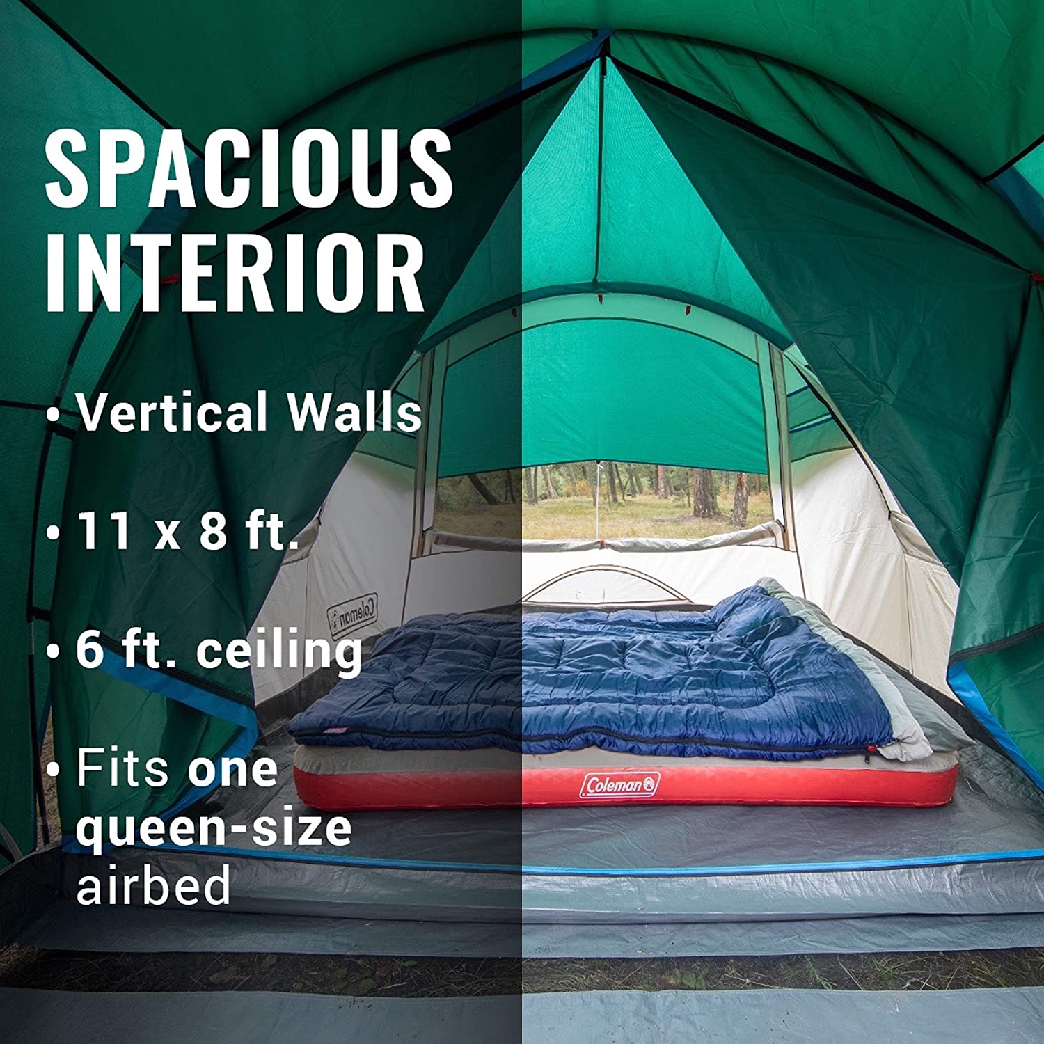 • DIMENSIONS: 11 x 8 ft. with 6 ft. ceiling; fits 1 queen-size air bed