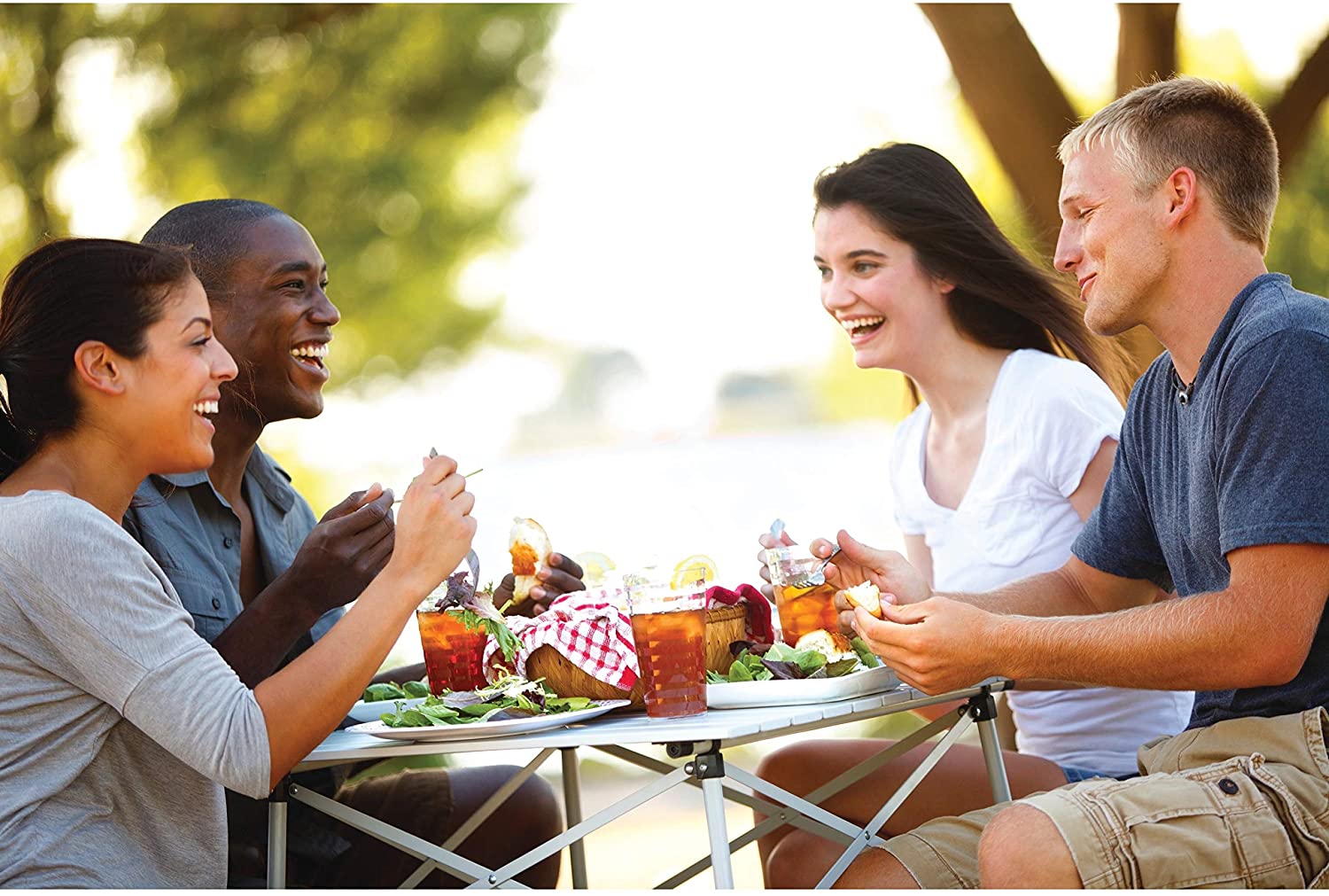 - Ultra-compact aluminum folding table ideal for camping and outdoor cookouts