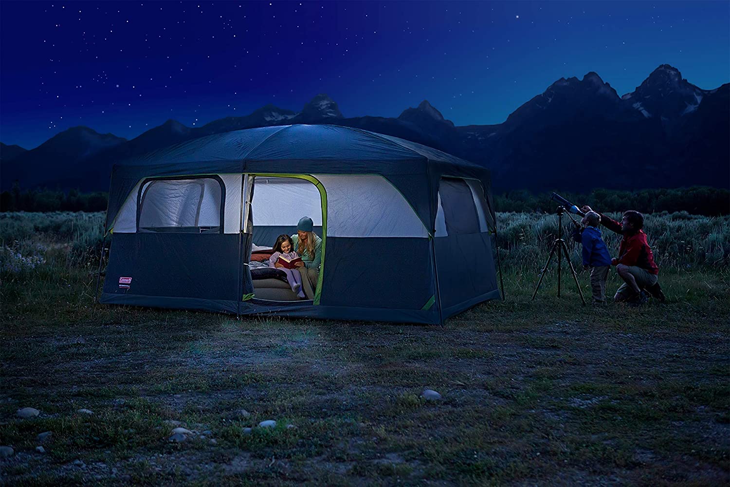 - 9-person cabin tent makes you feel at home with built-in LED lighting and fan system