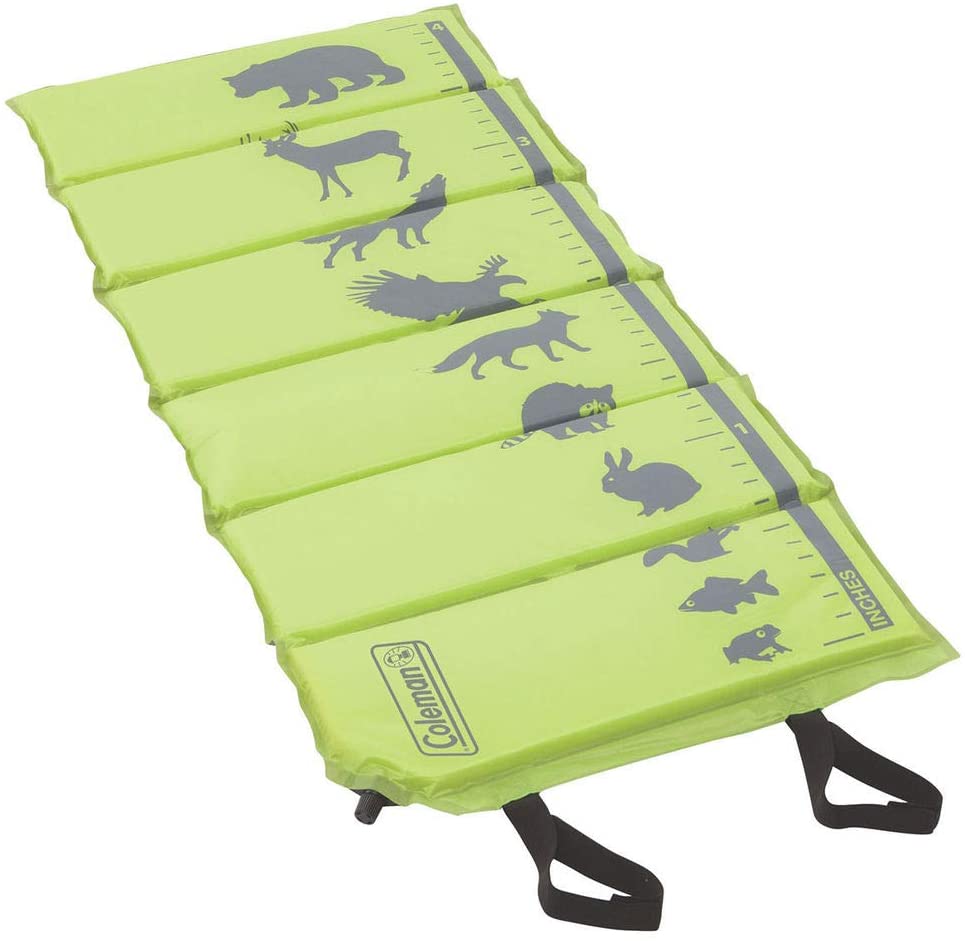 Young campers can also experience compact nighttime comfort and support when they pack a Coleman Youth Watch-Me-Grow Self-Inflating Pad. The animal print chart is a fun way to track your child's growth. Just unfold it and open the free-flow valve - the pad will automatically inflate itself. You can count on the durable, easy-to-clean polyester shell to hold up night after night. When the fun is done, simply open the valve, fold up the camp pad and sit on it to push out the extra air. The attached elastic bands will keep it neatly folded until the next family adventure.