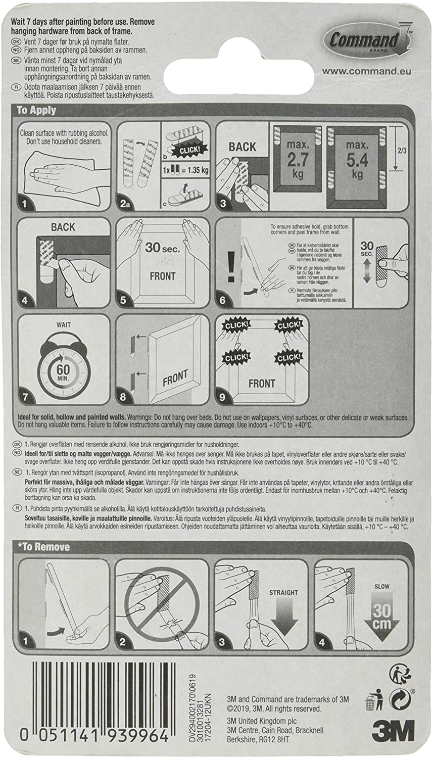 Command 17204-12ES 07248000796 CMND PIC HANG STRIP VP, 12 Pairs, White, Picture