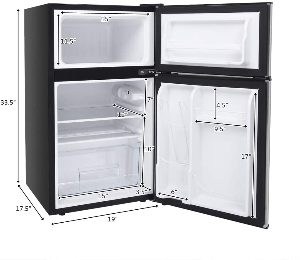 - 【2-Door Design】Large 3.2 cu. ft. fresh food capacity gives you the space to keep foods organized and 1 cu. ft. freezer capacity give you room to store frozen foods. And the two exterior doors allows you to access the freezer or the refrigeration compartment.