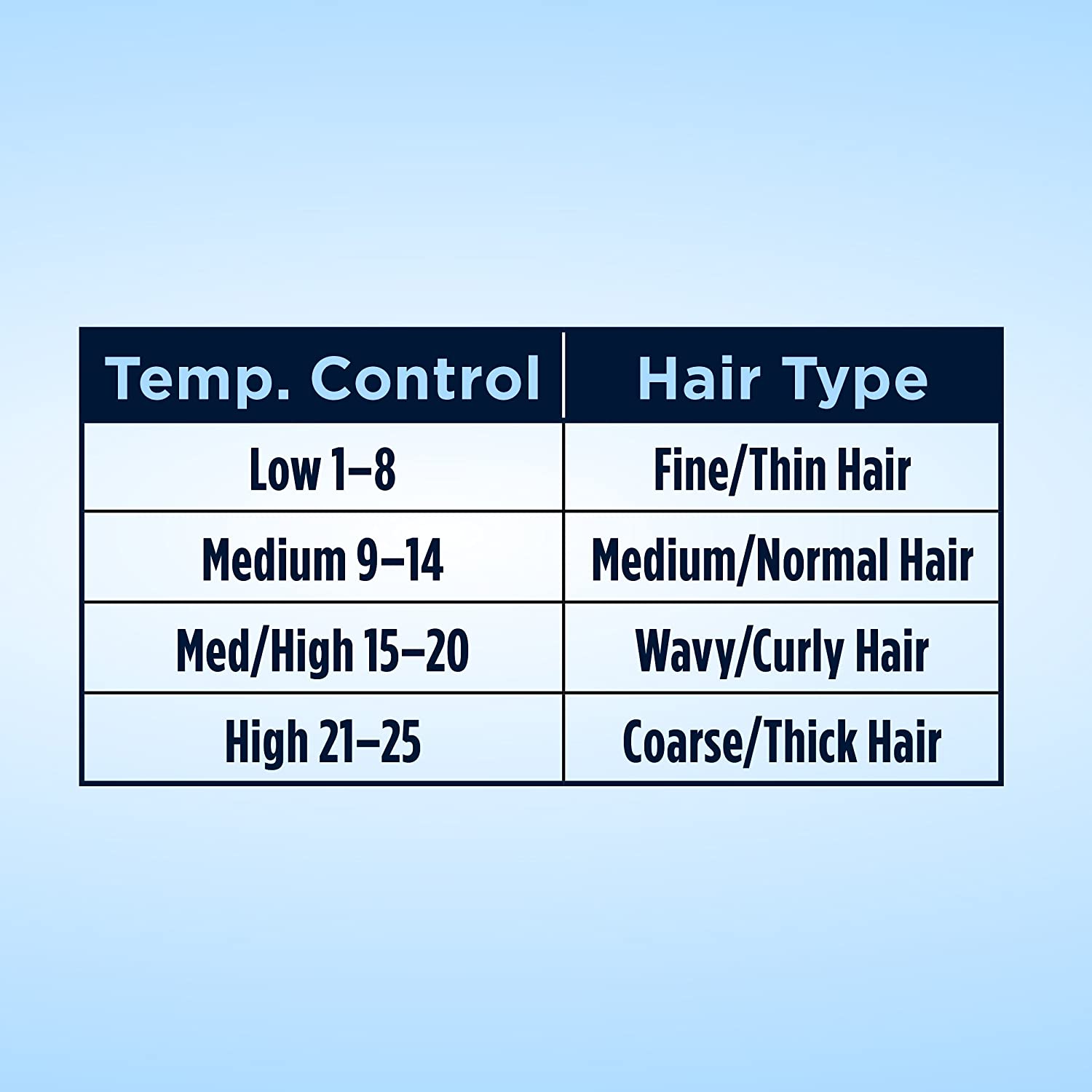 • 25 heat settings for all hair types with instant 30-second heat up to 400°F and Turbo Heat feature, which increases barrel temperature by up to 36°F