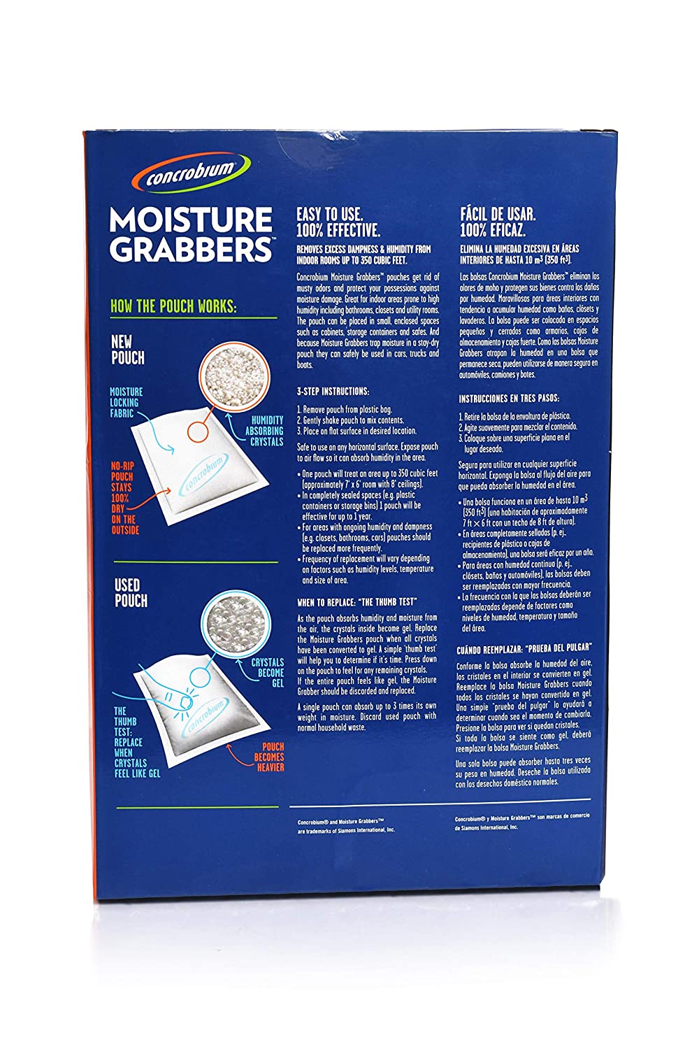 ABSORBS HUMIDITY - Concrobium Moisture Grabbers absorb excess humidity to protect surfaces and possessions against moisture damage, musty odors, rust and corrosion