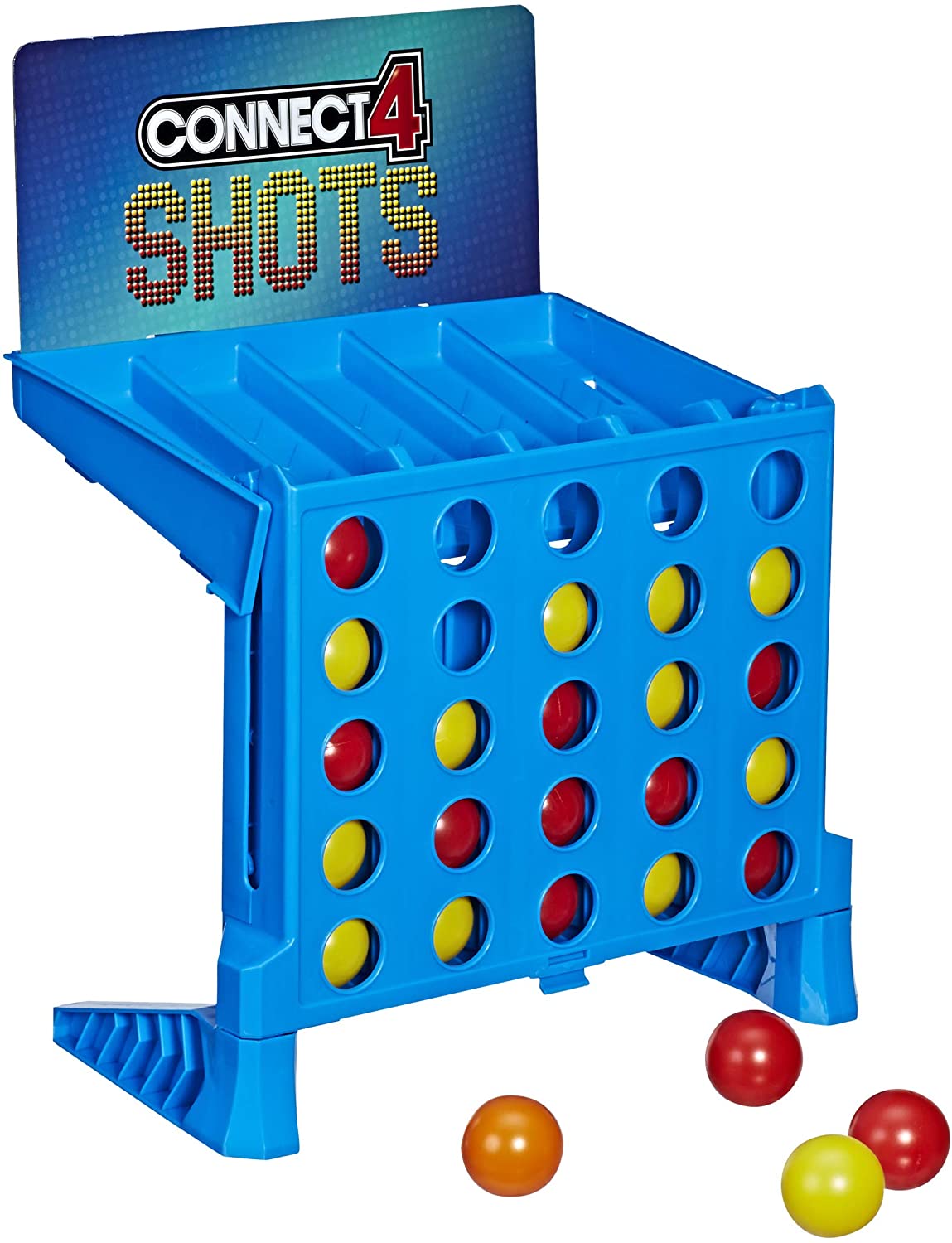 Bounce 'em in for the win! The Connect 4 Shots game is fast-paced, rapid-fire fun in a race to get 4 shots in a row! Count down to start: 1-2-3…bounce! Two players bounce the lightweight, colorful balls into the grid at the same time. Remember, the balls must hit the table before going in. Keep bouncing balls until a player gets 4 in a row of their color for the win. Then when the game is over, fold the grid into a handy storage case. Hasbro Gaming and all related terms are trademarks of Hasbro.