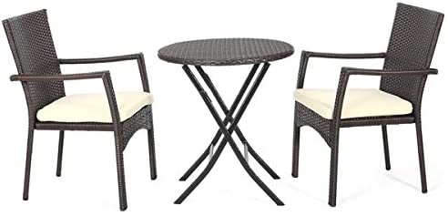 Contemporary, Modern Water Resistant Elba Outdoor 3-piece Brown Wicker Patio Garden,Round Bistro Set with Cream Cushions