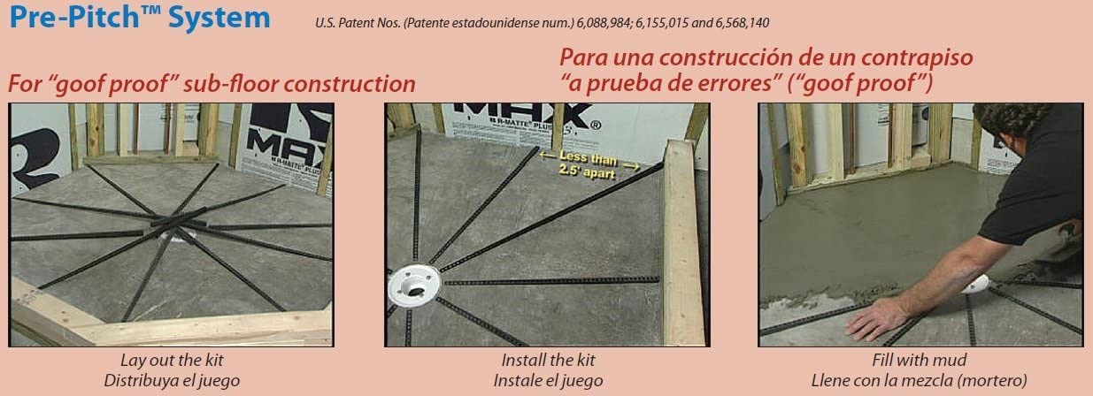 - PRE-PITCH - Pre-Pitch is a unique, stay-in-place spreading tool designed for use underneath shower pan liners and creates the proper sub floor slope needed to manipulate the water towards the weep holes that are an integral part of shower floor drains.