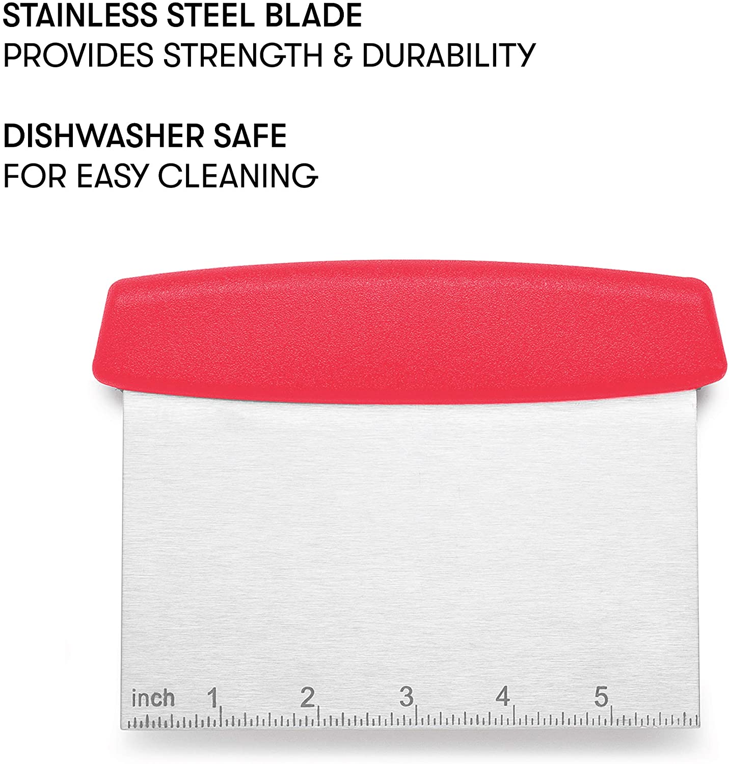 - EASY TO USE The stainless steel blade on this scraper has a measuring guide to allow you to easily measure and cut pastry and dough