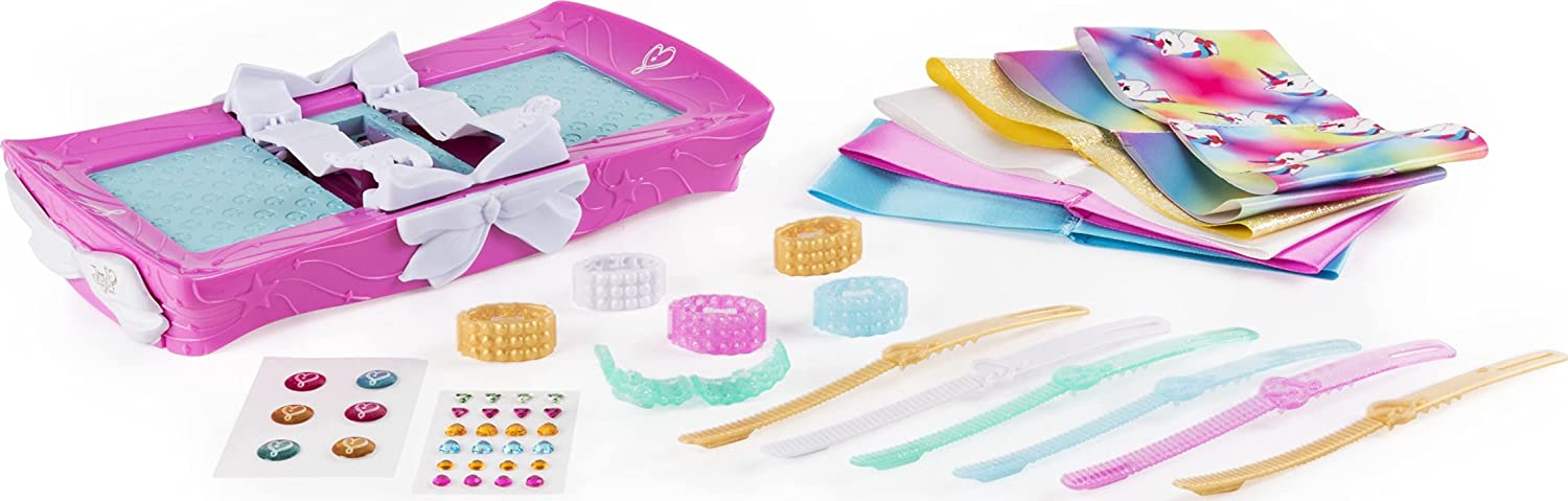 - EASY TO CREATE: The Cool Maker JoJo Bow Maker lets you easily create colorful double bows just like JoJo’s! No batteries needed – just scrunch, clasp and decorate! The Bow Maker also includes handy storage drawers!