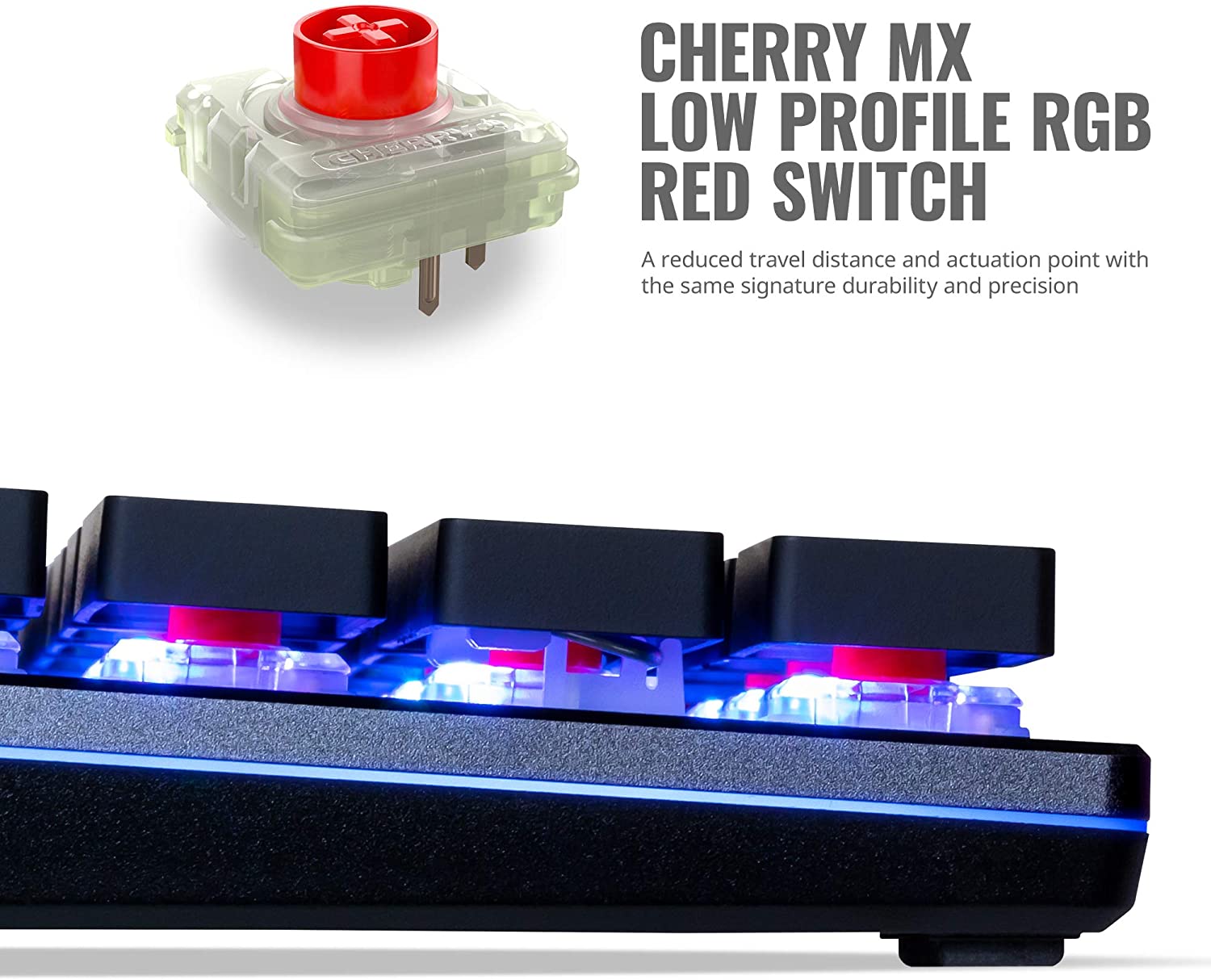 - Cherry MX low profile switches a reduced travel distance and actuation point with the same signature durability and precision