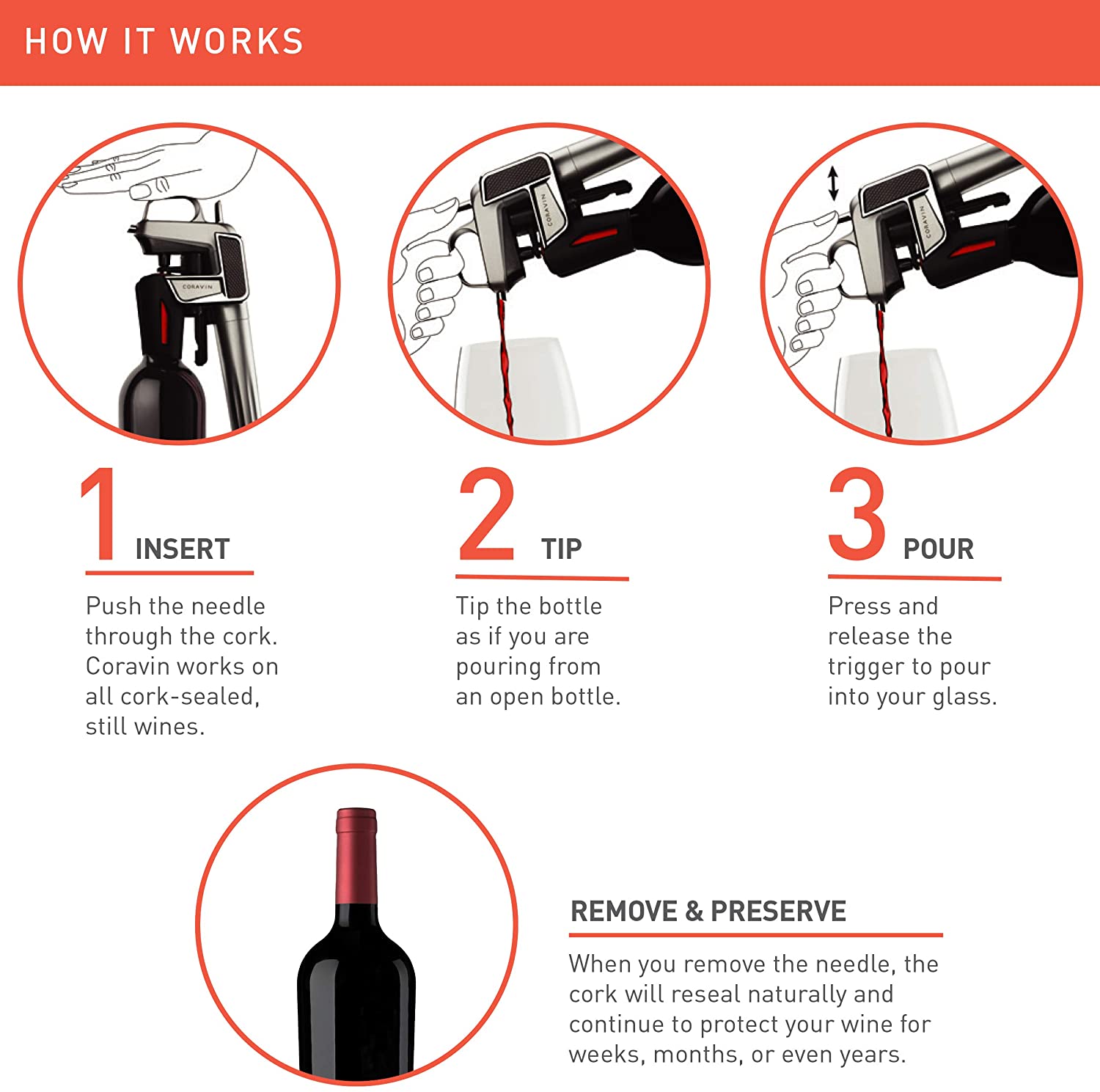 - Enjoy Wine On Your Own Terms- the Coravin wine system gives wine enthusiasts the freedom to pour any wine, in any amount, without removing the cork.