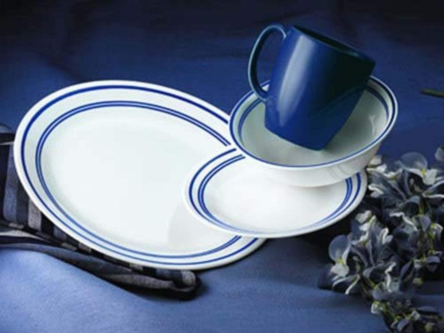 Corelle Livingware Urban Black 16-piece set, service for 4 includes 4-each-10-1/4-inch dinner plates, 4-each-6-3/4-inch bread and butter plates, 4-each-18-ounce soup/cereal bowls, 4-each-11-ounce stoneware stoneware mugs. The striking contrast of bold, black bands on white dinnerware and matching solid stoneware mugs offers a contemporary look that's simple, yet elegant and coordinates with a range of home décor styles.Corelle, brings beauty and durability to your table everyday. For more than three decades, Corelle products have epitomized the definition of durability and quality. What makes Corelle Livingware and Corelle Ultra so durable and versatile is vitrelle brand glass, composed of a unique, technologically advanced material. In a one of a kind manufacturing facility in Corning, New York, Corelle thermally bonds three layers of glass together, forms the shapes and then tempers the glass to give its final strength. Because of this process, Corelle Livingware and Corelle Ultra dinnerware have the added versatility of being suitable for reheating or even cooking in conventional, convection or microwave ovens. And with their ergonomic, lightweight design, Livingware and Ultra plates and bowls stack easily, conserving valuable kitchen space. In addition to its exceptional durability and design, Corelle products offer an array of fashionable patterns and coordinates - perfect for all kitchen decorating styles. Corelle's beautiful patterns also withstand the test of time. That's because Corelle use only food safe enamel pigments that are fired directly onto the dinnerware. You'll never need to worry about fading, scraping, scratching, or wearing off. Corelle… beautiful today¿.. Beautiful for years to come.