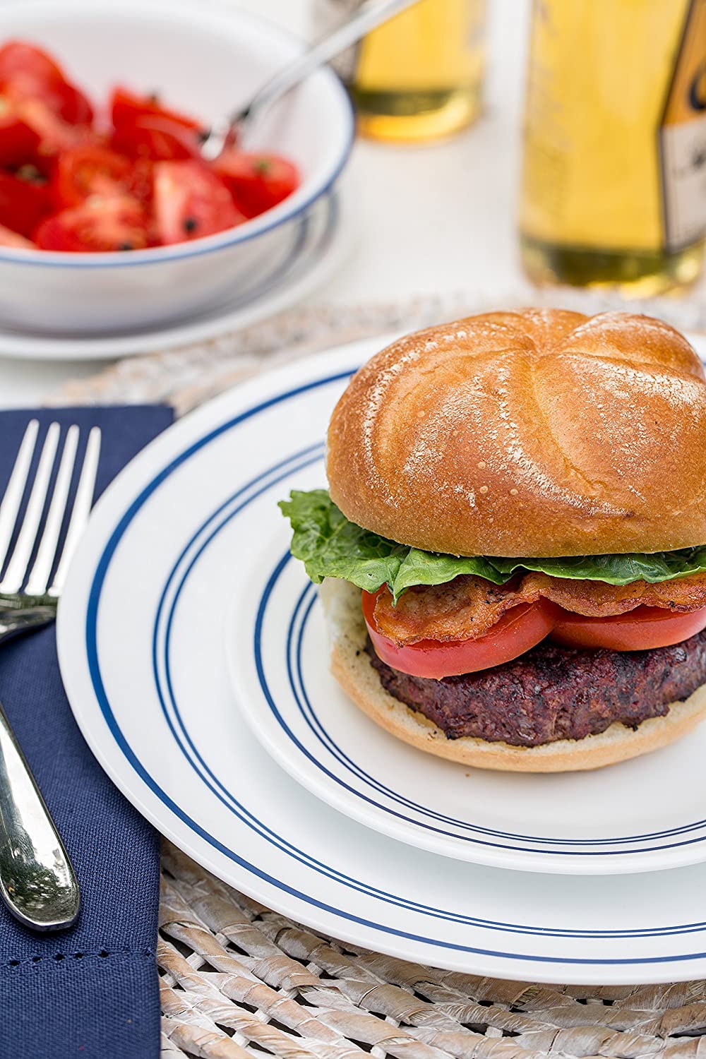 - Service for 4 includes: 4 each 10-1/4" Dinner Plates, 6-3/4" Bread and Butter Plates, 18-Ounce Soup/Cereal Bowls, 11-Ounce Stoneware Mugs