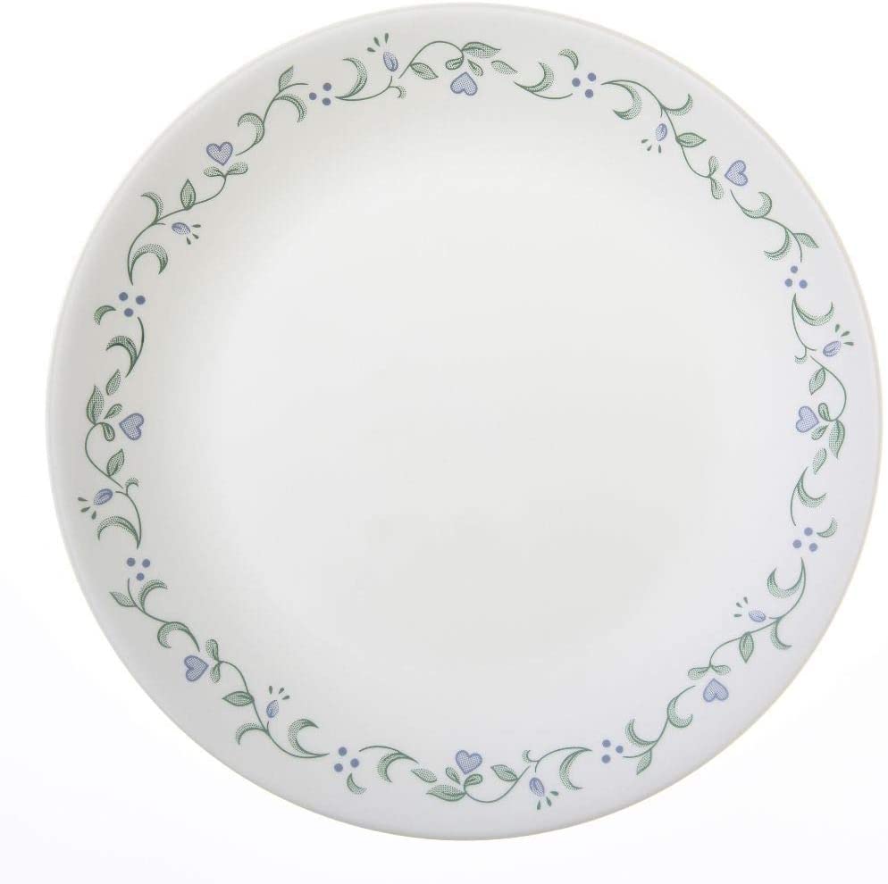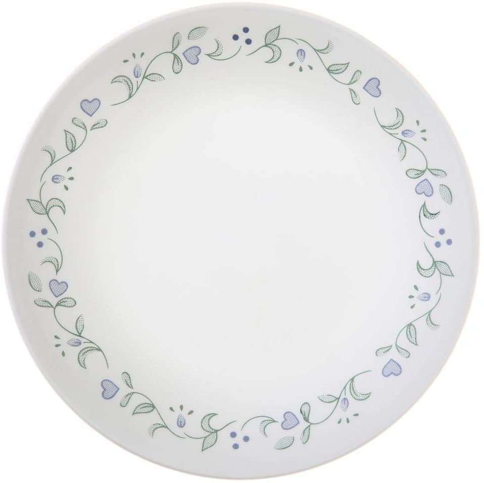 Quaint and calming, Corelle Livingware's Country Cottage dinnerware offers an old-fashioned retreat from the hustle and bustle of modern life. This charming mix-and-match pattern features a sky-blue palette with plates edged by delicate vines of hearts, petals, and feathery leaves; bowls outlined in simple stripes; and a solid-blue mug with an invitingly glossy finish. Set against a crisp white base color, the look is fresh and easy-going, as if the pattern might just as easily make its home on rough-hewn farmhouse table.