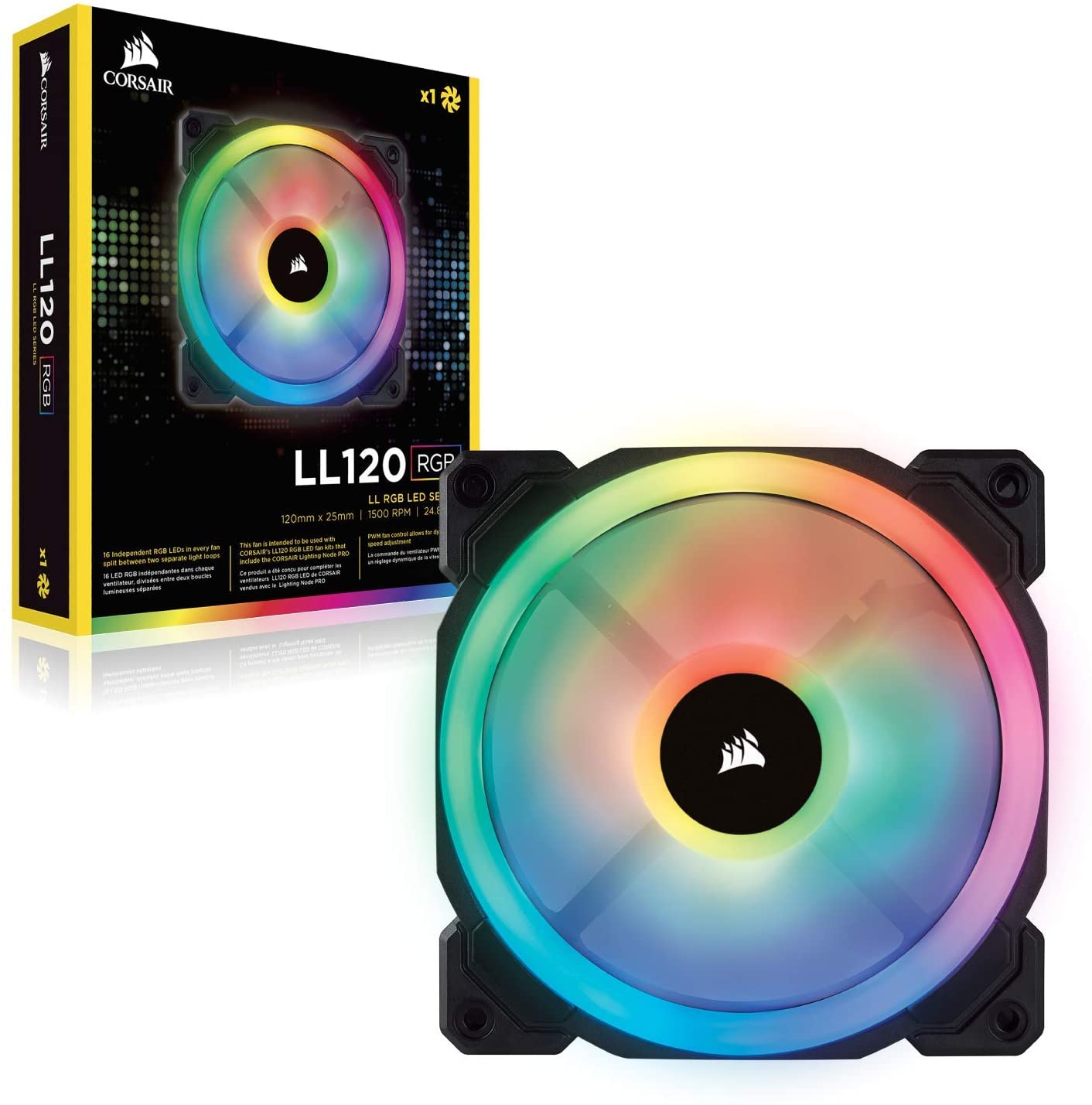 The Corsair LL120 RGB PWM fan combines excellent Airflow low-noise operation and 16 brilliant independent RGB LEDs spread between two separate light loops that encircle the fan and its hub Pair with an existing LL120 RGB kit or Corsair lighting Node Pro (sold separately) to customize lighting with a wide array of vivid effects and patterns Using an optimized 120mm fan blade and PWM control set the speed of the fan anywhere from 600 RPM to 1 500 RPM for precise noise and airflow adjustment Made for those seeking excellent Airflow quiet operation and powerful lighting The Corsair LL120 RGB fan puts your PC back in the loop. Operating Voltage: 7V - 13.2V. Sound Level: 24.8 dBA