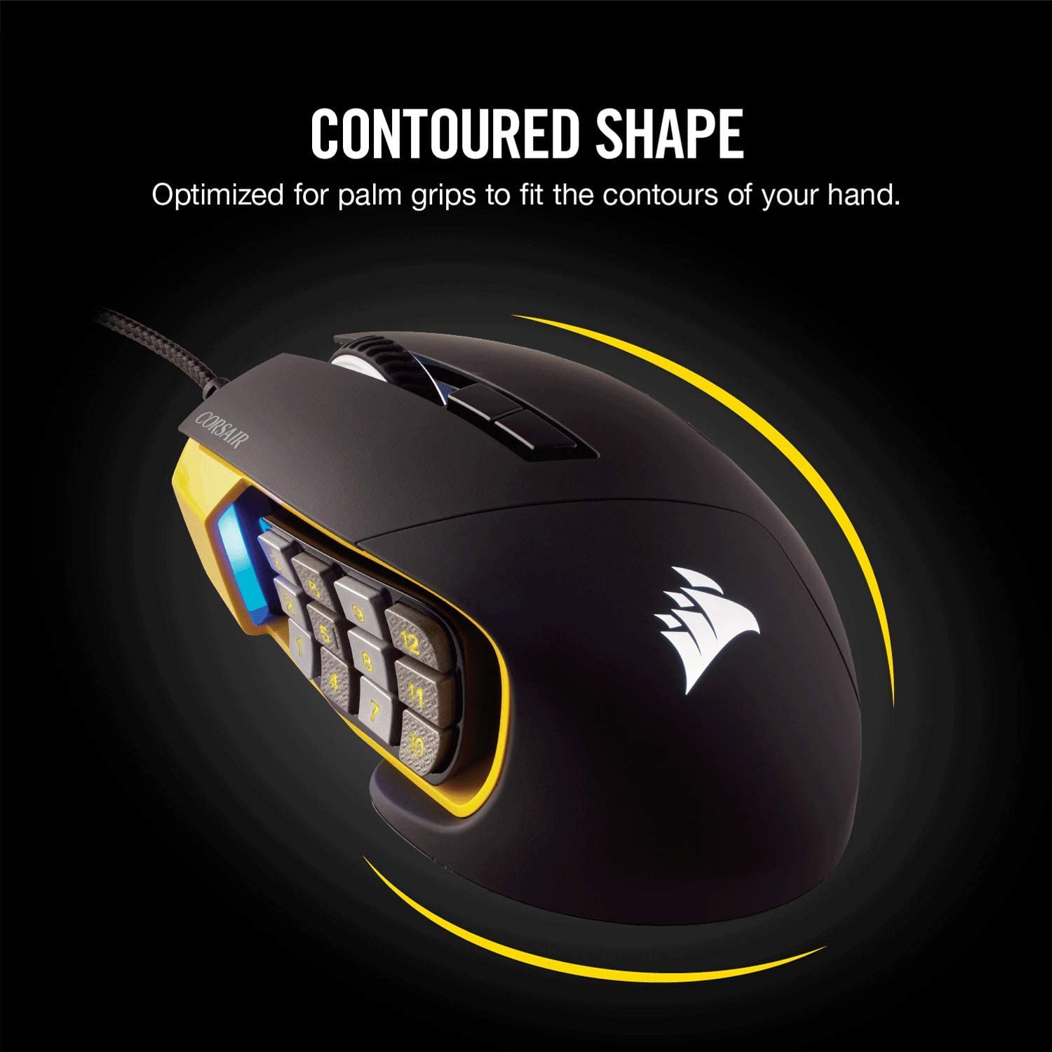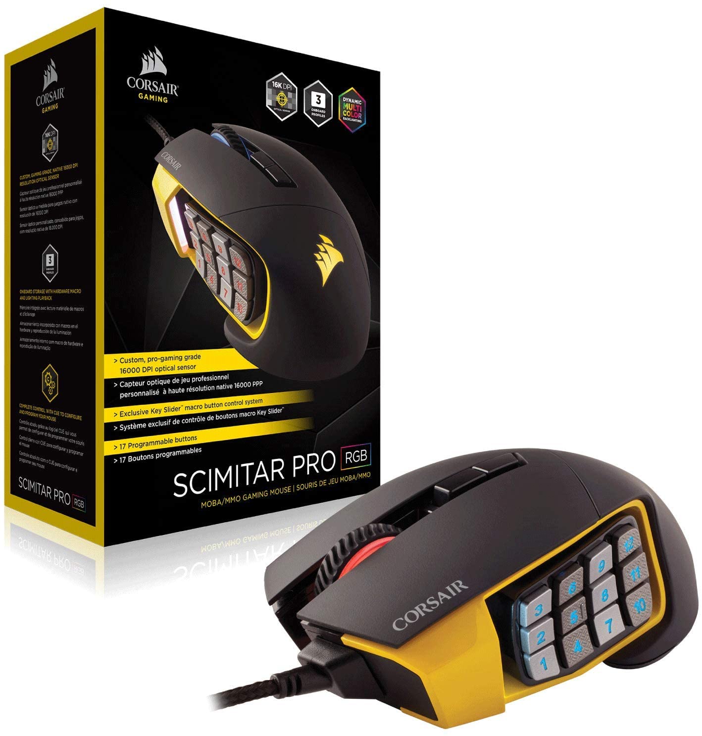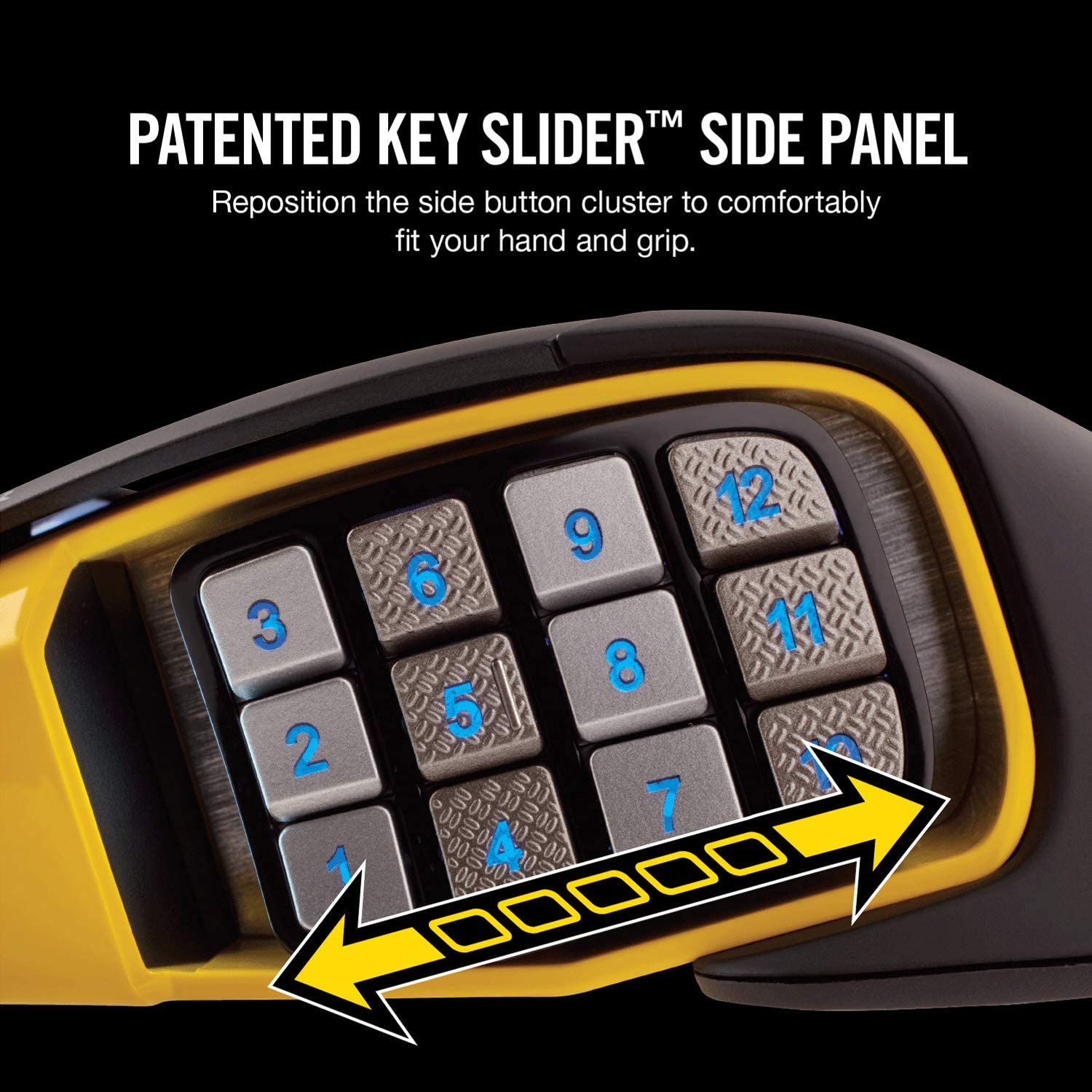 The SCIMITAR Pro RGB gaming mouse advances your game with the innovative, customizable key Slider macro button control system. A native 16000 DPI Optical sensor with 1 DPI resolution steps enables High accuracy performance. Onboard storage with up to three gaming profiles allows you to use your settings on the go.