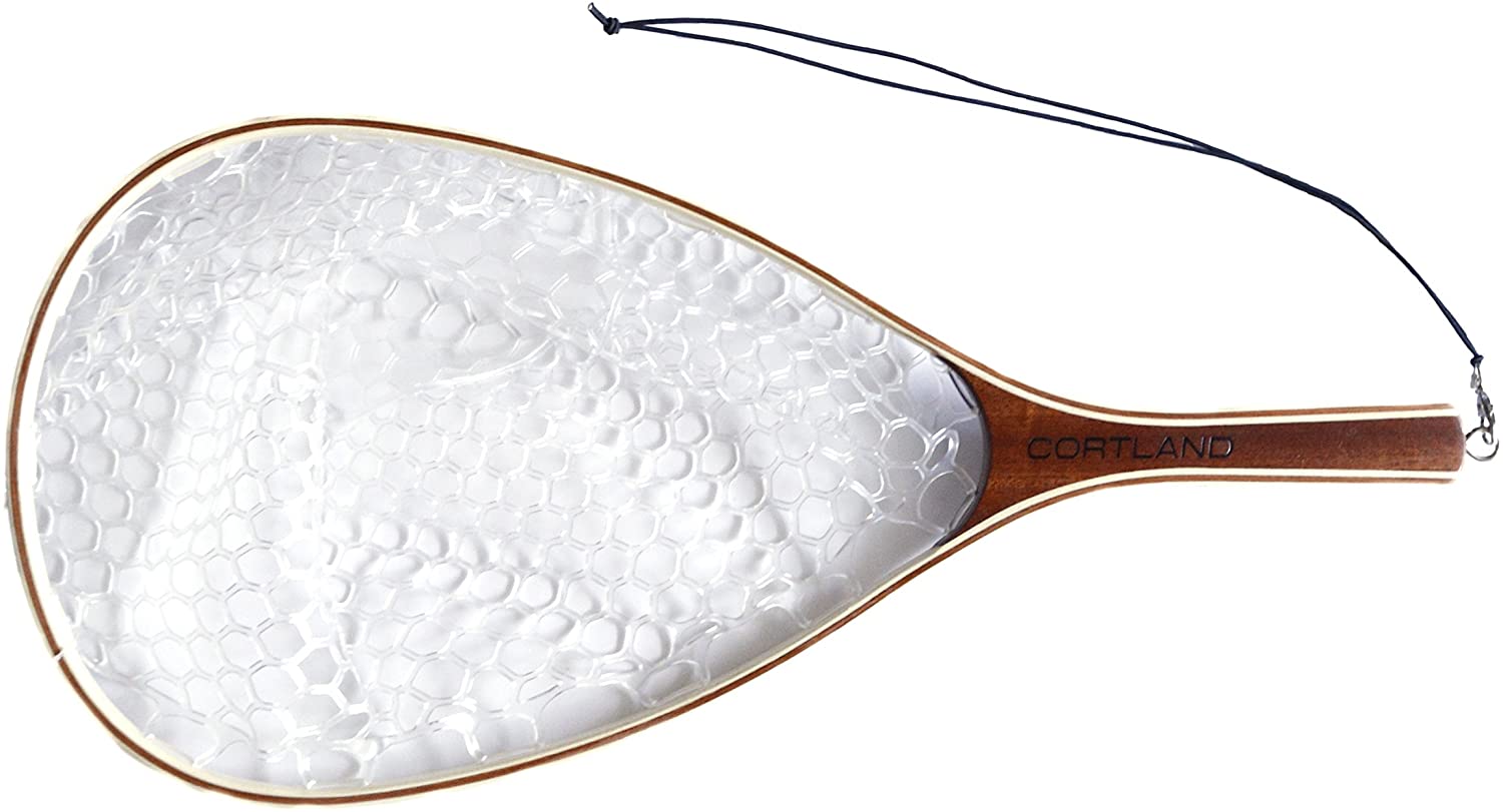Our catch and release net features a soft, clear net material that’s gentle on the fish and won’t tangle, rot or mildew. The clear net won’t spook fish because it virtually disappears underwater. The frame is made from laminated bamboo and hardwood. Frame size: 23-1/2” x 11”