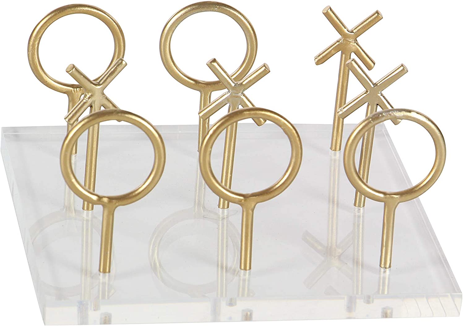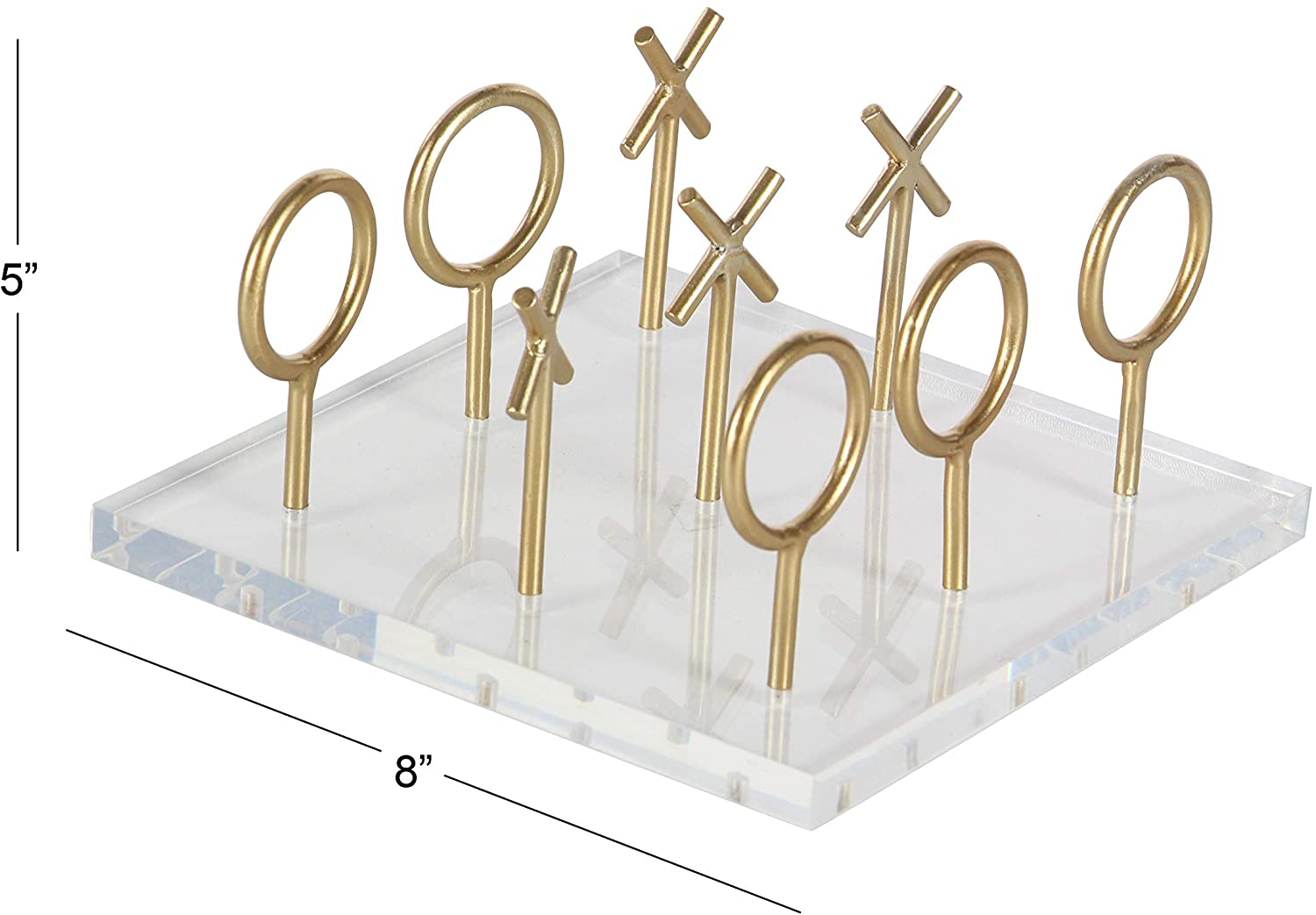 CosmoLiving by Cosmopolitan 56988 Glam Style Metallic Gold Tic Tac Toe Game Set on Clear Acrylic Board