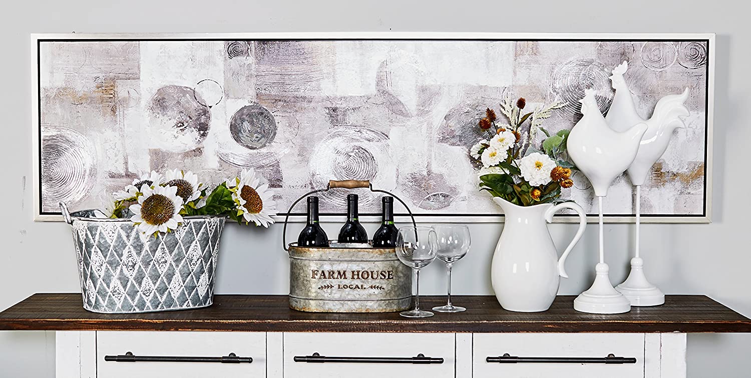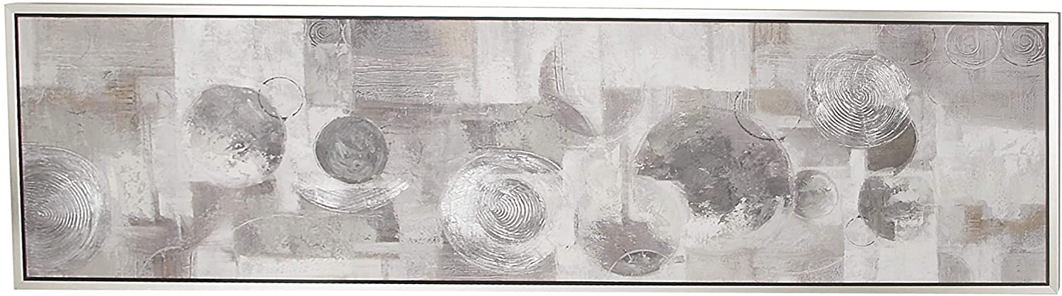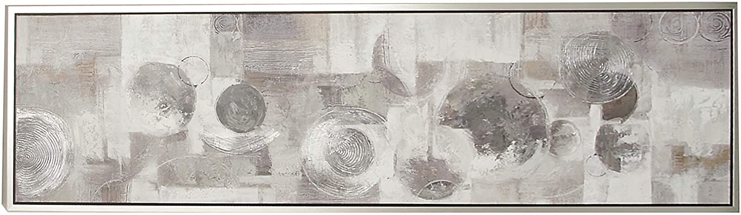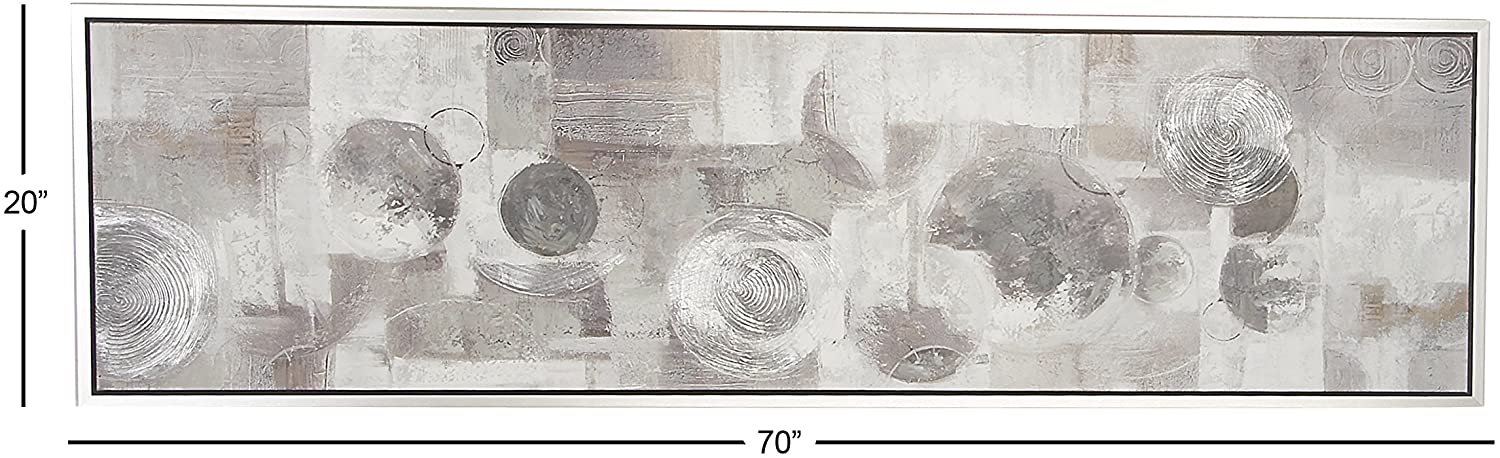 CosmoLiving by Cosmopolitan 60073 Large Rectangular Gray, Black & White Abstract Circles Contemporary Painting in Silver Frame | 70” x 20”