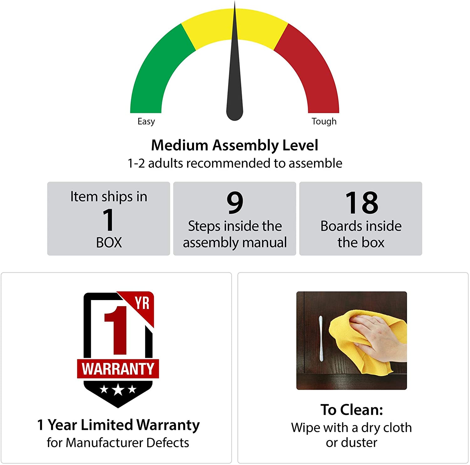 - Wall anchor kit is included to secure the Bookcase to the wall and prevent tipping injuries