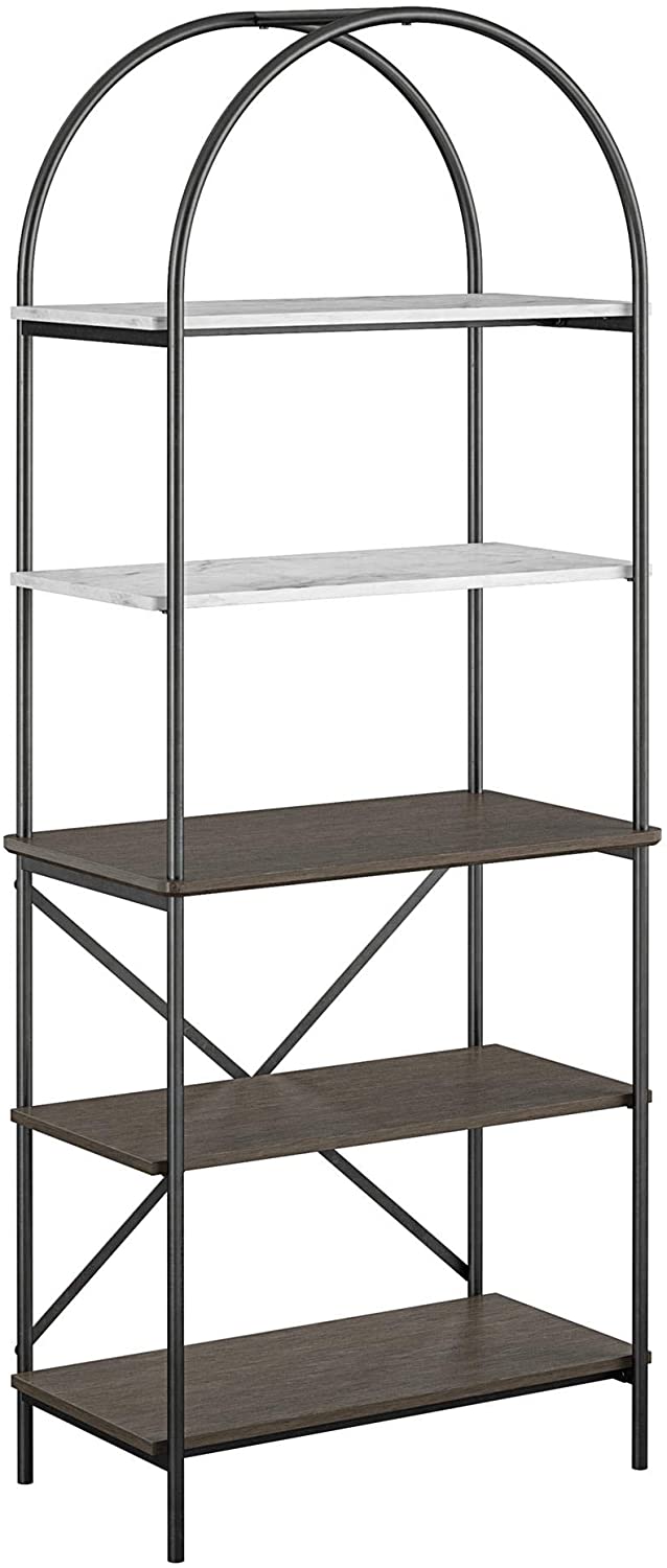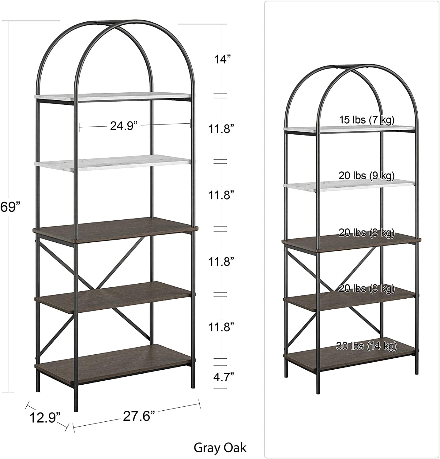 Nab our style for yourself with the CosmoLiving by Cosmopolitan Vivinne Five Shelf Bookcase. Arched frame and modern metal legs give this bookcase top-notch design perfect for any fashionista. Obsessorize on the 5 open shelves that provide ample storage for all of your favorite ~things~. A wall anchor kit is included to secure the bookcase to the wall and prevent tipping injuries. Available in trendy gray, the bookcase is a space-saving dream come true.