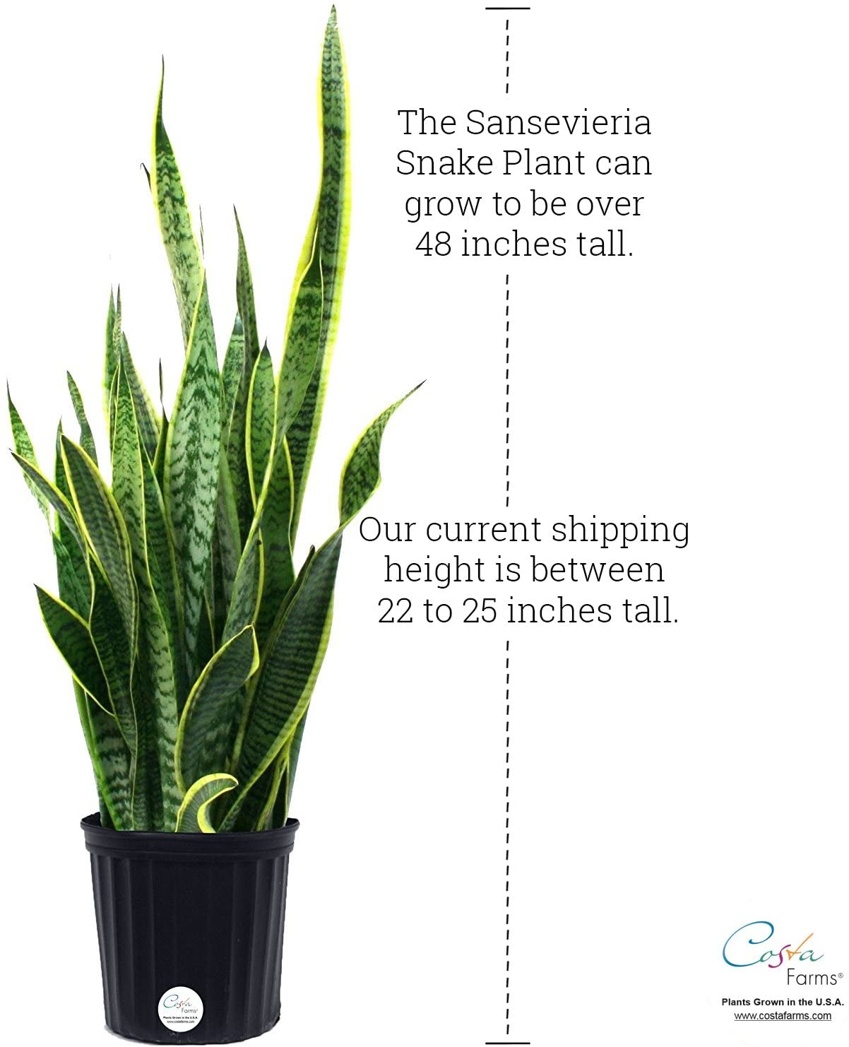 If you're looking for an easy-care houseplant, you can't do much better than snake plant. This hardy indoor plant is still popular today because of how adaptable it is to a wide range of growing conditions. Most snake plant varieties have stiff, upright, sword-like leaves that may be banded or edged in gray, silver, or gold. Snake plant's architectural nature makes it a natural choice for modern and contemporary interior designs. It's one of the best houseplants around. Grow Sansevieria in any room in your home, they also make great office plants. They grow faster in bright light conditions but tolerate low-lit rooms just as well. The snake plant is a hardy and drought tolerant plant and can go a couple of weeks without water. Water when top soil is dry; drain any excess water. Plants are living things; each one is slightly different, so the plant you receive may vary from the photo. It typically measures 24 to 33 inches tall from the pot bottom to the top of the plant. Our growers hand pick the healthiest, best-looking, highest-quality plants. We package our plants for shipment with great care so they’ll arrive at your home ready to be displayed. We're unable to ship this item to: AK,AZ,CA,GU,HI. Our plants come in pots for all decorating needs: shelf size (7-14in tall), tabletop (16-24in), and floor (24-48in). Look for COSTA FARMS when buying plants online. Be aware of third-party sellers; other companies try to imitate our quality. On Amazon, there are no other authorized Costa Farms sellers. Look for “Ships from and sold by Amazon.com” to ensure you’re getting our premium plants. Shipped fresh from our farm to you, Costa Farms is passionate about delivering happy, healthy, beautiful plants. Send us your feedback at questions@costafarms.com.