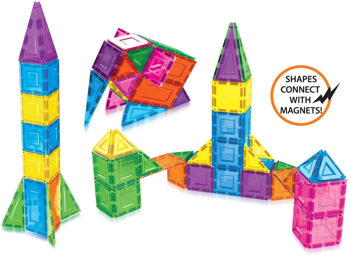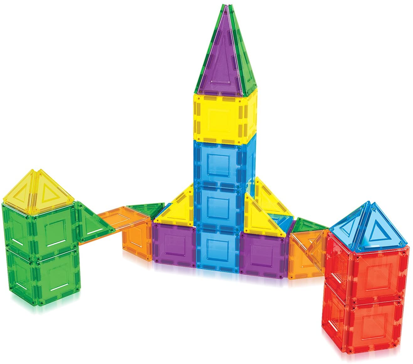 Magrific is terrific!  Build with the exciting magic of 3D magnetic tiles and let the fun begin! Let your imagination soar and create cool designs, structures and characters with different geometric magnetic shaped tiles. Safe magnets magically hold tiles together to allow you to build in any direction. 5 different geometric shapes in 6 different bright colors. Build 100s of different creations from included project sheet or use your own designs. Teaches critical STEM ( science, technology, engineering and math) skills. Promotes fine motor skills, visual spatial skills, creativity and imagination. Hours of fun building and rebuilding.  Comes in sets of 100, 28 and 14 pieces, each sold separately.