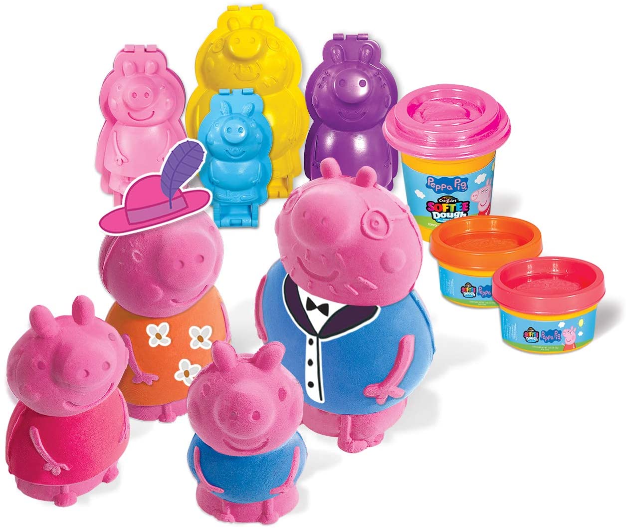 - Endless creative play that includes 4 Peppa pig character book molds, 7 softee dough cans, punch out accessories Sheet & sculpting tool.