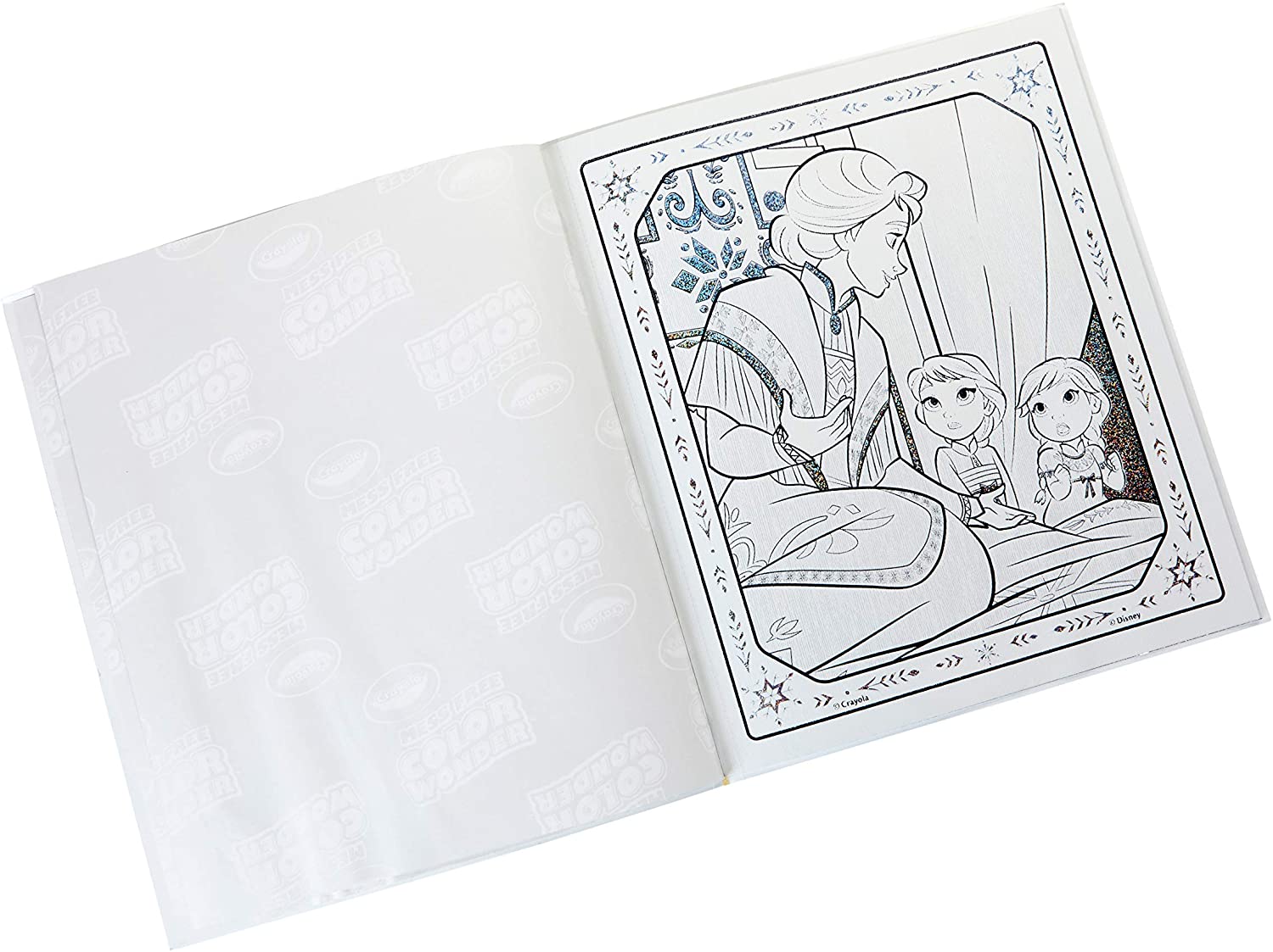 • COLOR WONDER SET: Contains 5 Color Wonder Markers and 12 Frozen Coloring Pages with Glitter Effects!