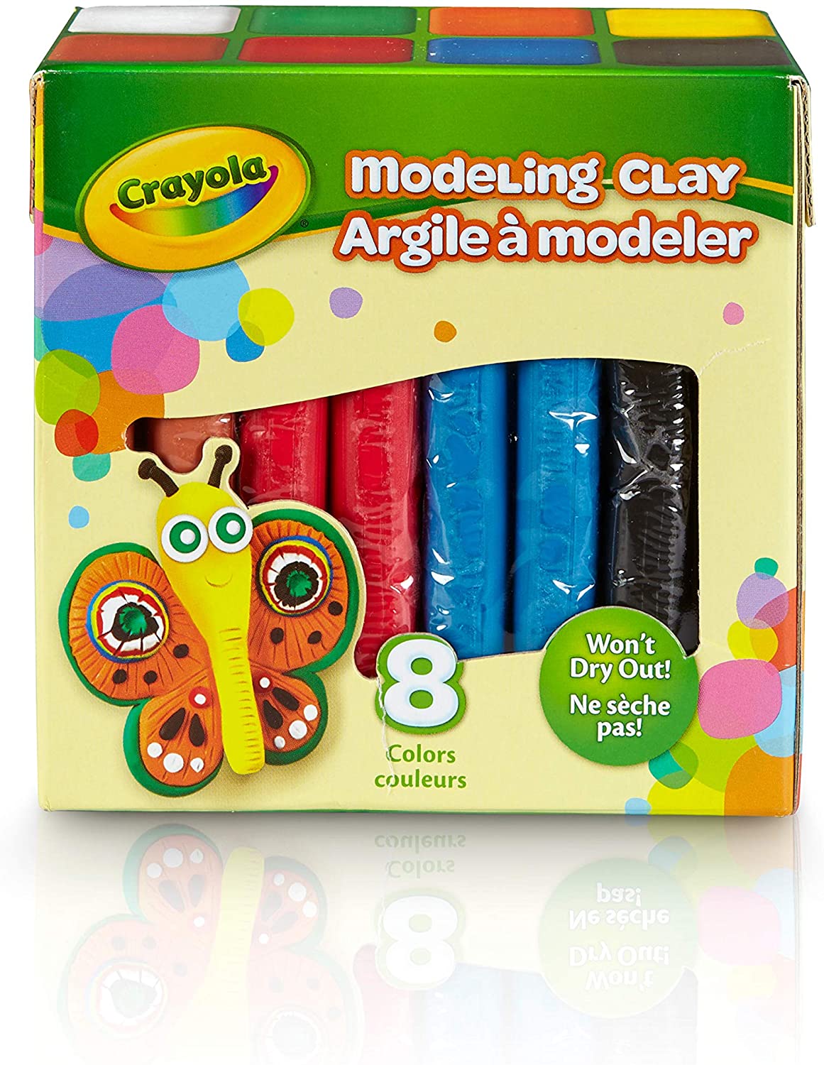 Shape, build and sculpt! Young modelers have everything they need to mold soft sculptures with this 2lb set of Crayola Modeling Clay in Bold Colors. This versatile, non-hardening clay is completely reusable. It even stays soft after molding, ensuring it can keep up with your child's imagination. The clay also resists water thanks to its wax and oil-based formula, further lengthening its lifespan. This set features 8 colors including Black, White, Brown, Red, Orange, Yellow, Green, and Blue clay. Crayola modeling material is a stable for classroom projects, school assignments, and at home arts and crafts. Makes a great gift for kids ages 4 and up.