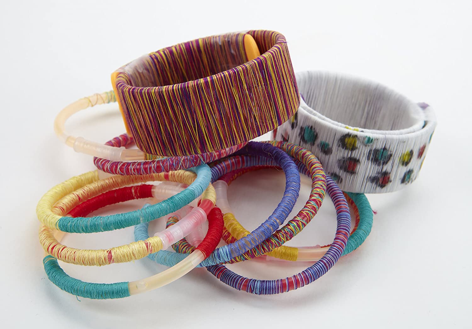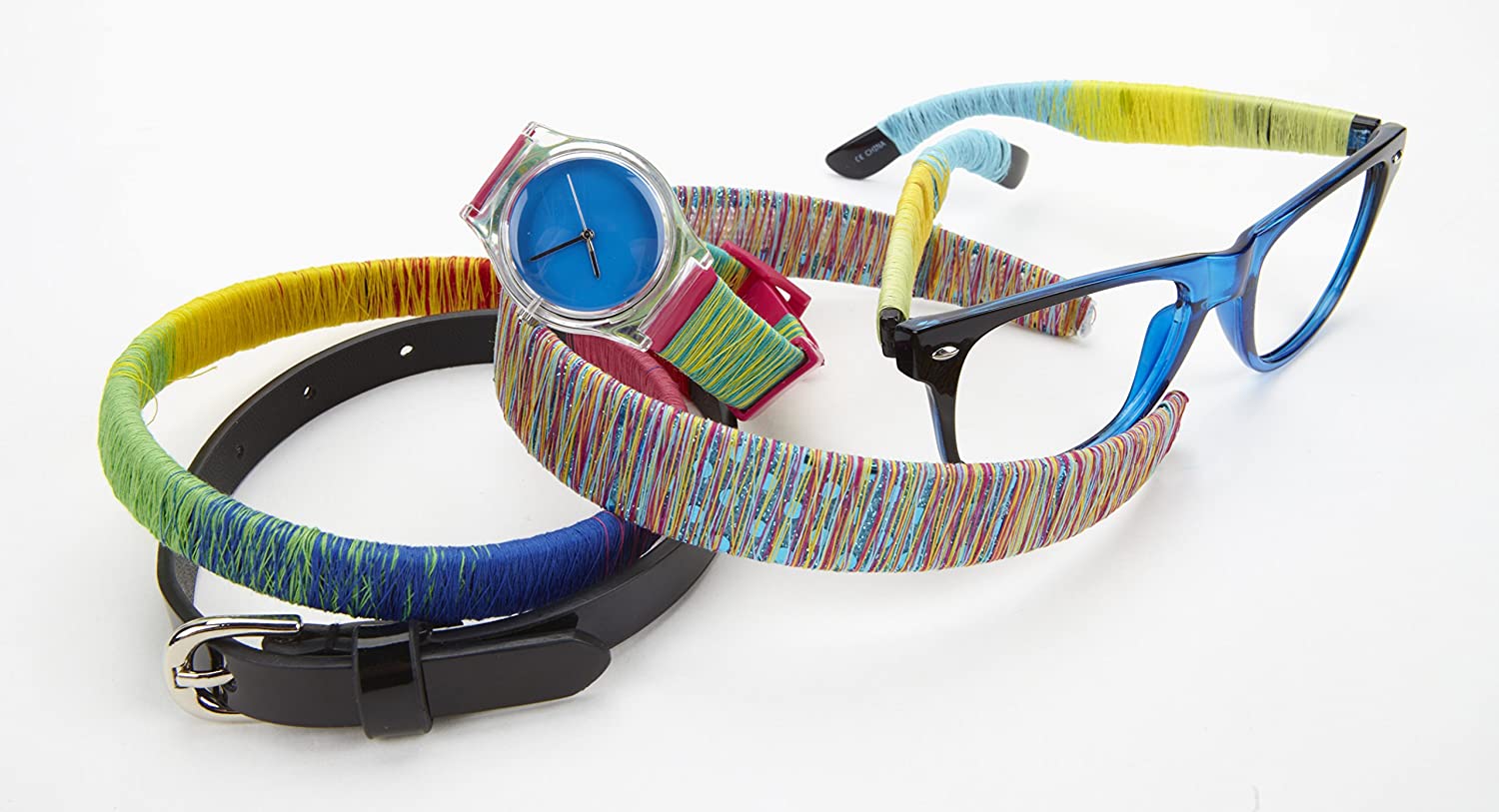 Wrap your favorite accessories with thread. Re-Use, re-purpose, and customize. Comes with unit, thread, and fabric marker.