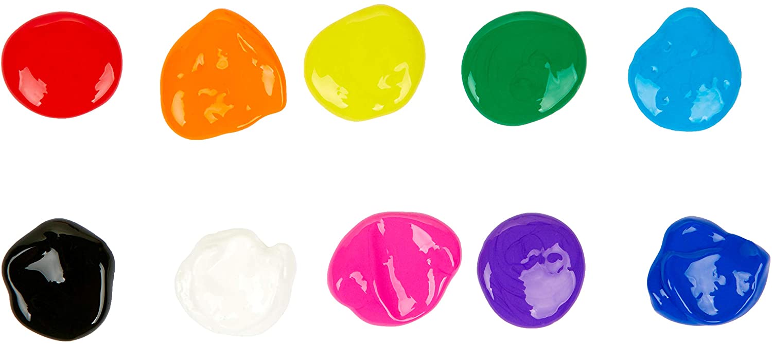 Washable Kids Paint includes 10 non-toxic water-based paint that is great for arts, crafts, and school projects. Decorate book covers, signs or posters can be used with various brushes, stamps, or sponges to create interesting patterns and designs! 10 colors include: Red, Orange, Yellow, Green ,Turquoise, Blue, Violet, Magenta, Brown, and White.