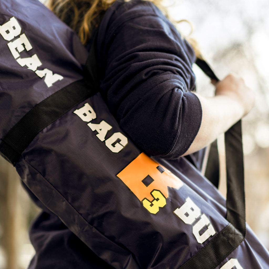 - Comes with 16 beanbags--8 per team, stand, 8 buckets with points, and carry bag