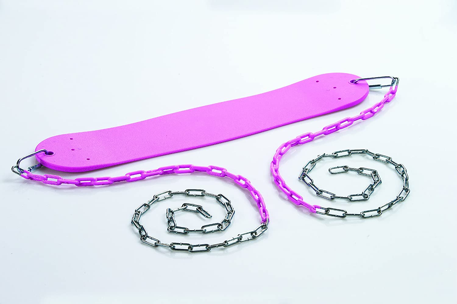 - Thicker, wider child swing seat and plastic dipped chains add a layer of longevity and safety to your outdoor swing set