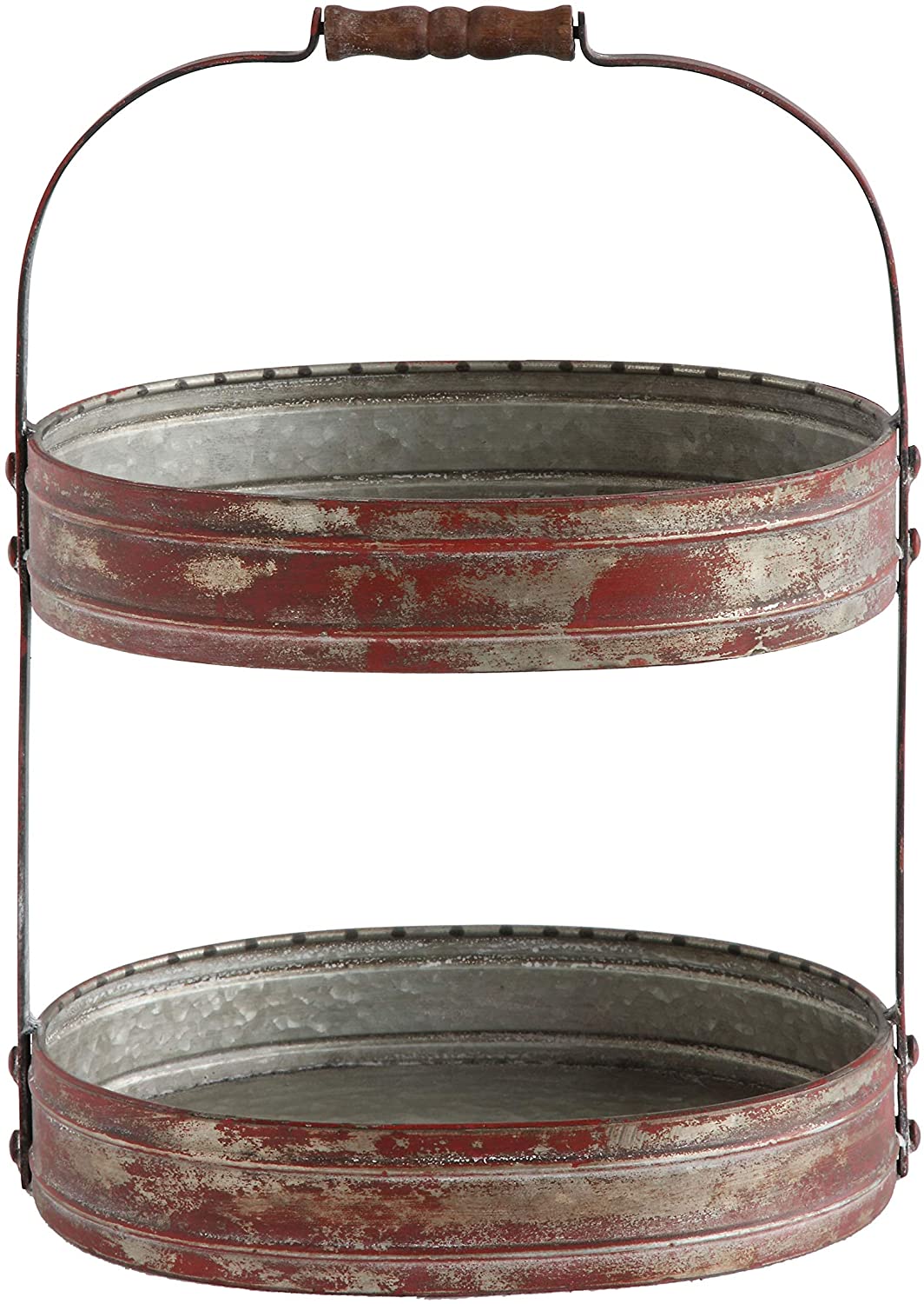 - Easily place the 2-tier tray on any table top or bookshelf for an added touch of rustic chic decor
