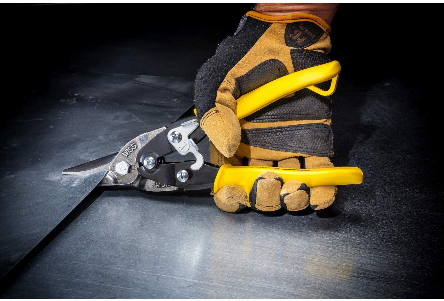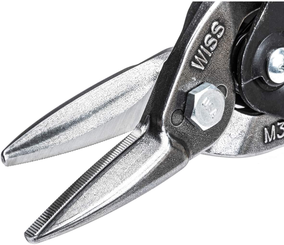 Wiss compound action snip with serrated blades to grab hold and aggressively cut through material, compound action to multiply the hand's force by five times and a self-opening spring action for a smooth low effort feed. The industry standard - the professional’s choice.