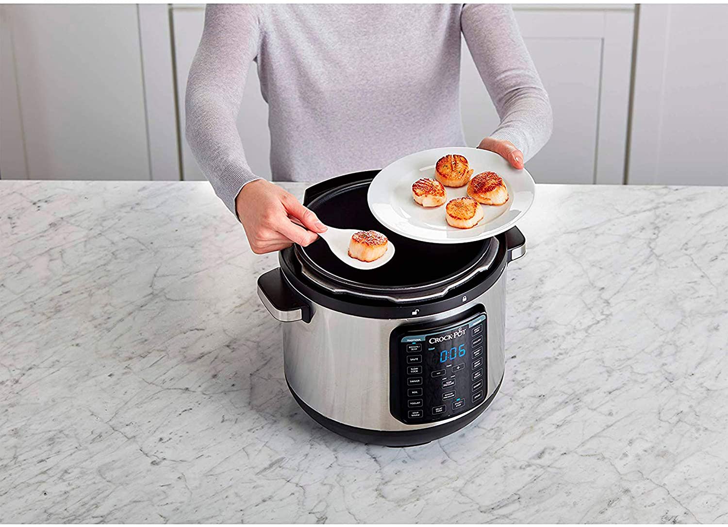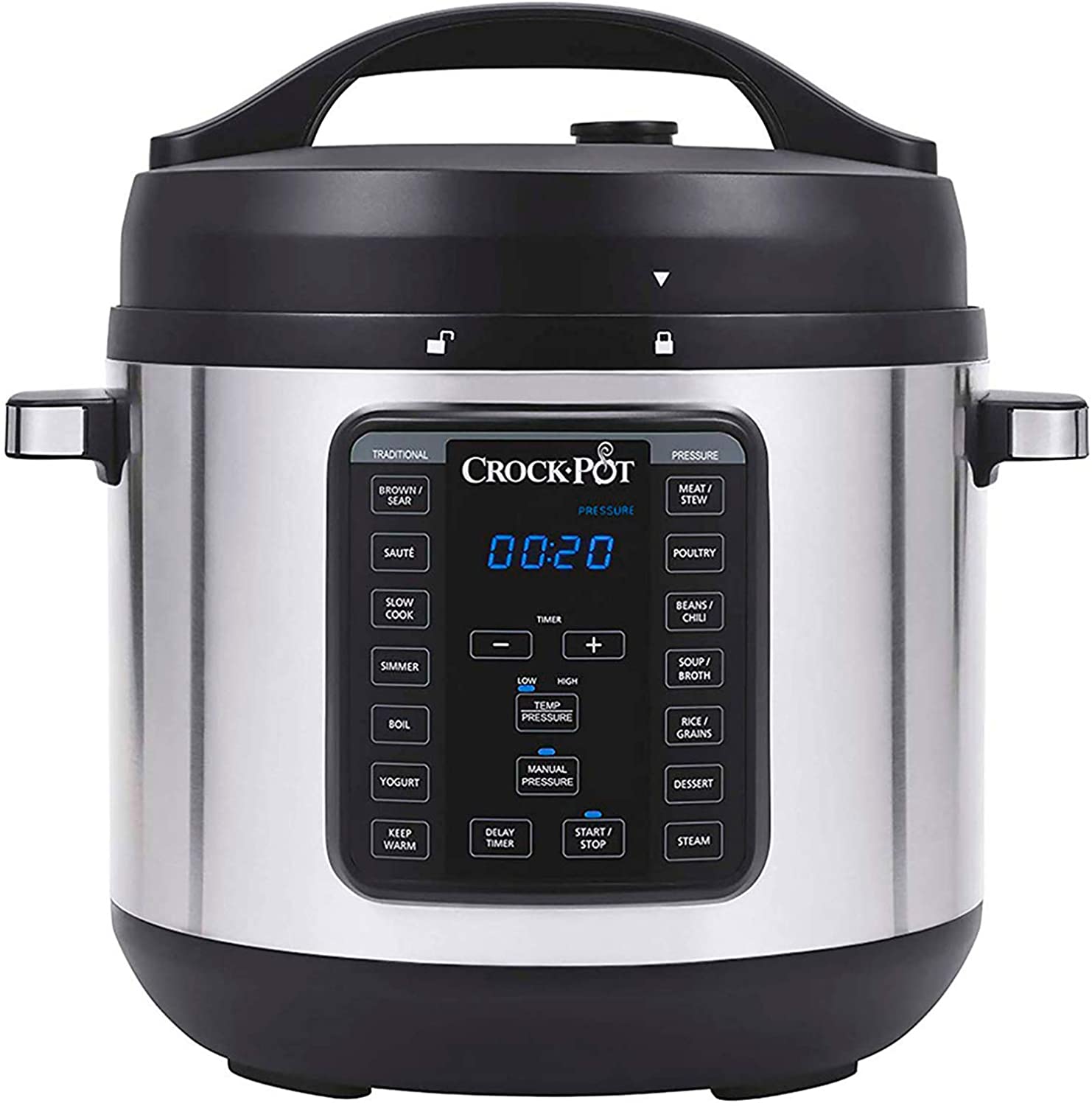 The Crock-Pot 8-Quart Express Crock XL Multi-Cooker can cook meals up to 70% faster than traditional cooking and has enough capacity to serve nutritious, home-cooked meals for large families or parties of ten people or more. Thanks to convenient one-touch settings for various pressure-cooked meals, you can choose to eat sooner, or you can use the slow cook setting to come back later to a delicious, hot meal. You can also steam, brown, sauté, simmer, boil, or use the Manual Pressure setting, making one-pot meals easier than ever. Additional sealing gasket included.
