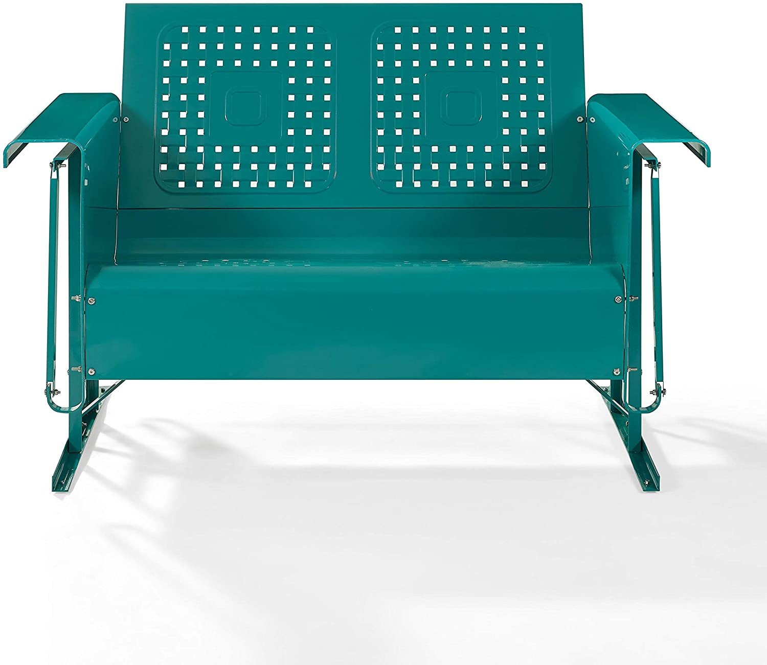 Glide back into lazy summer afternoons with the Bates Loveseat Glider from Crosley. Constructed from strong steel softly finished with a weather-resistant powder coating, this nostalgic summer staple is back again to provide rest and relaxation by the poolside or on the patio. Or, bring the iconic piece indoors to give the look of a perfect vintage fair find. Rock and sway with the smooth gliding mechanism and relax for summers to come.