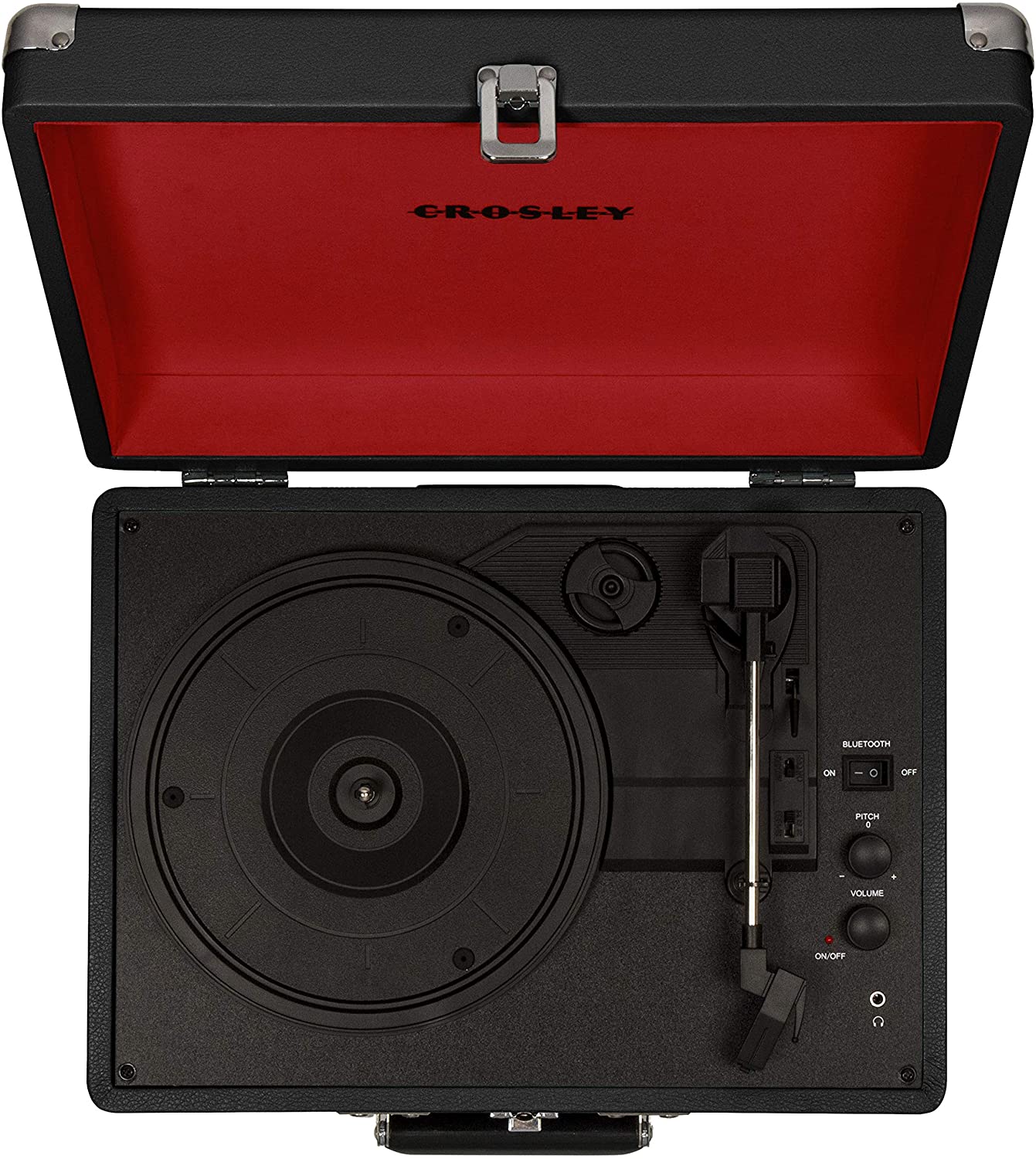Love the rich, warm sound of vinyl, but wish it was a more portable music format? mobilize your music with the Crosley Cruiser three-speed portable turntable. Constructed of wood and bound in a leatherette material, the briefcase-style record player is lightweight and easily transported from place to place. Built-in stereo speakers let you listen to your music without having to connect it to a speaker system, so you can cruise over to a friend's house and experience vinyl's superior sound together. Adjustable pitch control lets you customize your listening experience. There's also built-in Bluetooth, allowing you to stream your favorite music from your Bluetooth-enabled device wirelessly to the Cruiser's dynamic full-range speakers.