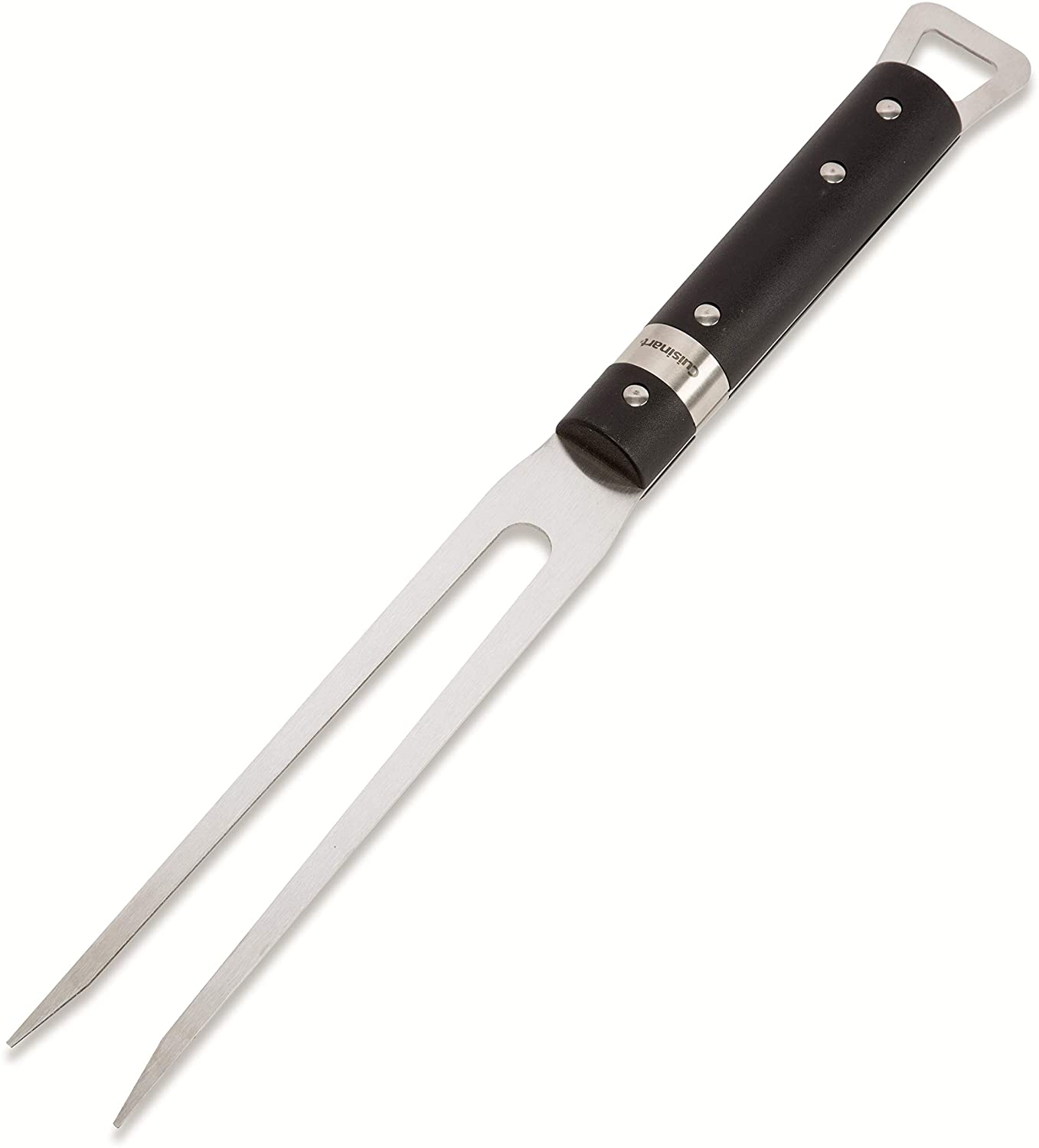 The Cuisinart 2-Piece Carving Set is perfect for slicing grilled chicken into strips or a smoked brisket into the perfect serving slices. The stainless steel meat fork features two long, elegant tines for help securing and steadying smoked meats, poultry, game, and more. The stainless steel knife features grooves perfect for cutting through fattier cuts of meat like brisket. This carving set also makes a thoughtful housewarming or newlywed gift for couples or individuals who love to barbecue or smoke.