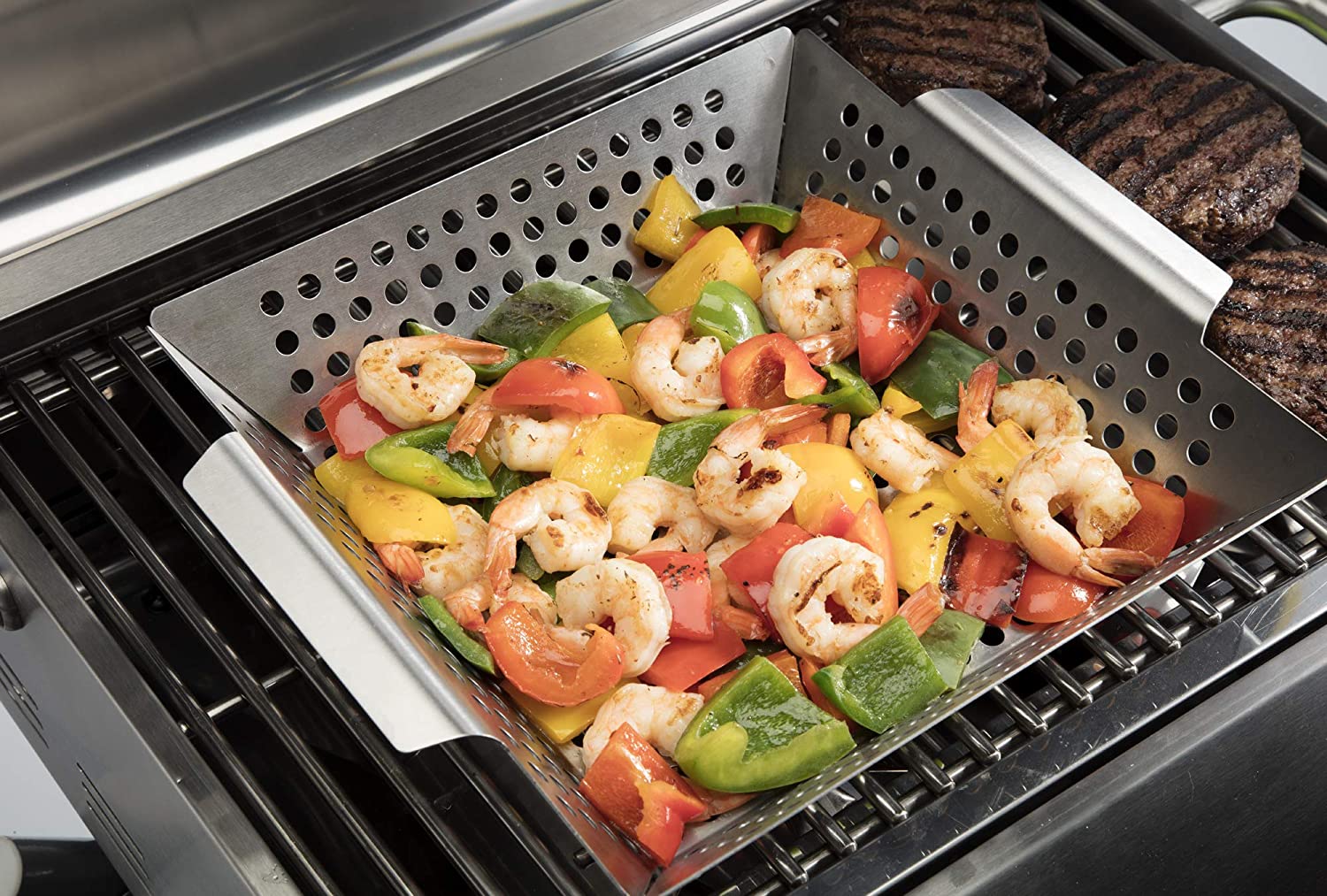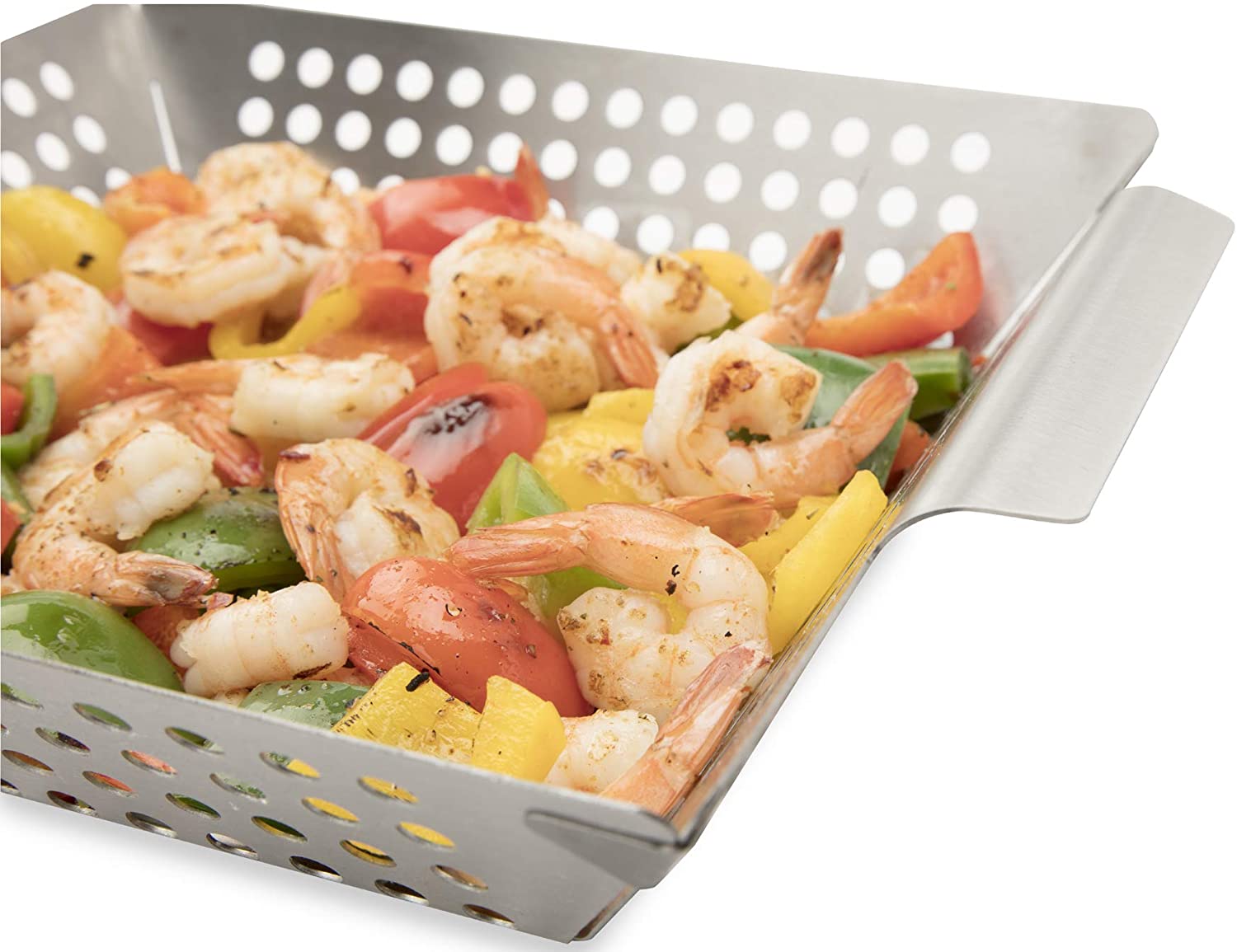 • PROVIDES ALTERNATIVE TO KABOBS: Provides great substitute for a typical kabob, keeps foods from fall through the cooking grate without the need for skewers. Excellent for grilling veggies, shrimp, cubed meats, or for any small foods that you want to grill.