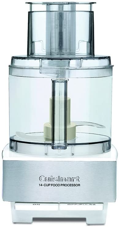 The Cuisinart DFP-14BCNY custom food Processor has an extra-large Feed tube that holds whole fruits and vegetables. Features a 14-Cup work bowl, 4mm stainless steel Medium slicing disc, stainless steel shredding disc, and chopping/mixing blade. Includes a spatula and recipe book.