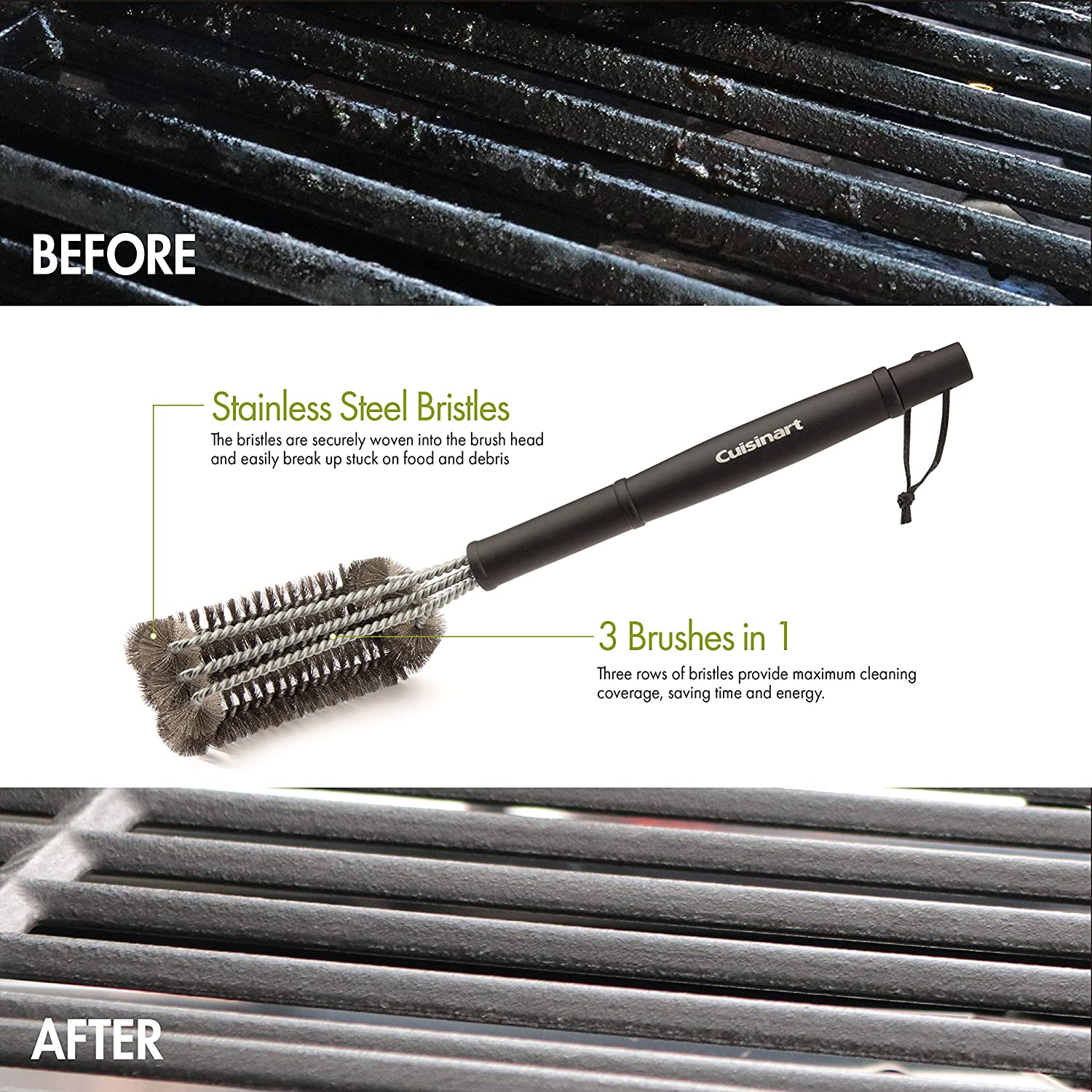 - 3 brushes in 1: the triple threat grill brush features 3 brushes in 1, giving you Triple the amount of cleaning in a third of the time of a traditional grill brush.